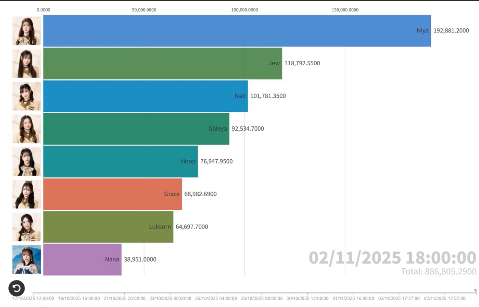 - ยอดโหวตรวม 846,450 token อันดับ 1-4 นีญ่า, จิว, แนล, เกลญ่า  ยอดโหวตทะลุ 5 แสน เกินครึ่งของยอดรวมเลย
