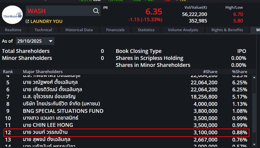 วันนี้ถ้า WASH ไม่แตะ 5.75 ผมเลี้ยงข้าวเย็น