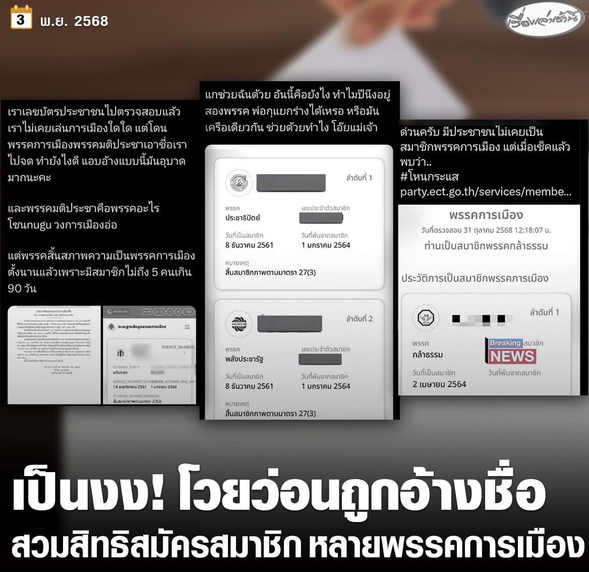 งงถ้วนหน้า! หลายคนแห่โพสต์ในโซเชียล โวย ถูกสวมสิทธิ์แอบอ้าง ใช้ชื่อ – เลขบัตรประชาชน สมัครสมาชิกพรรคการเมือง