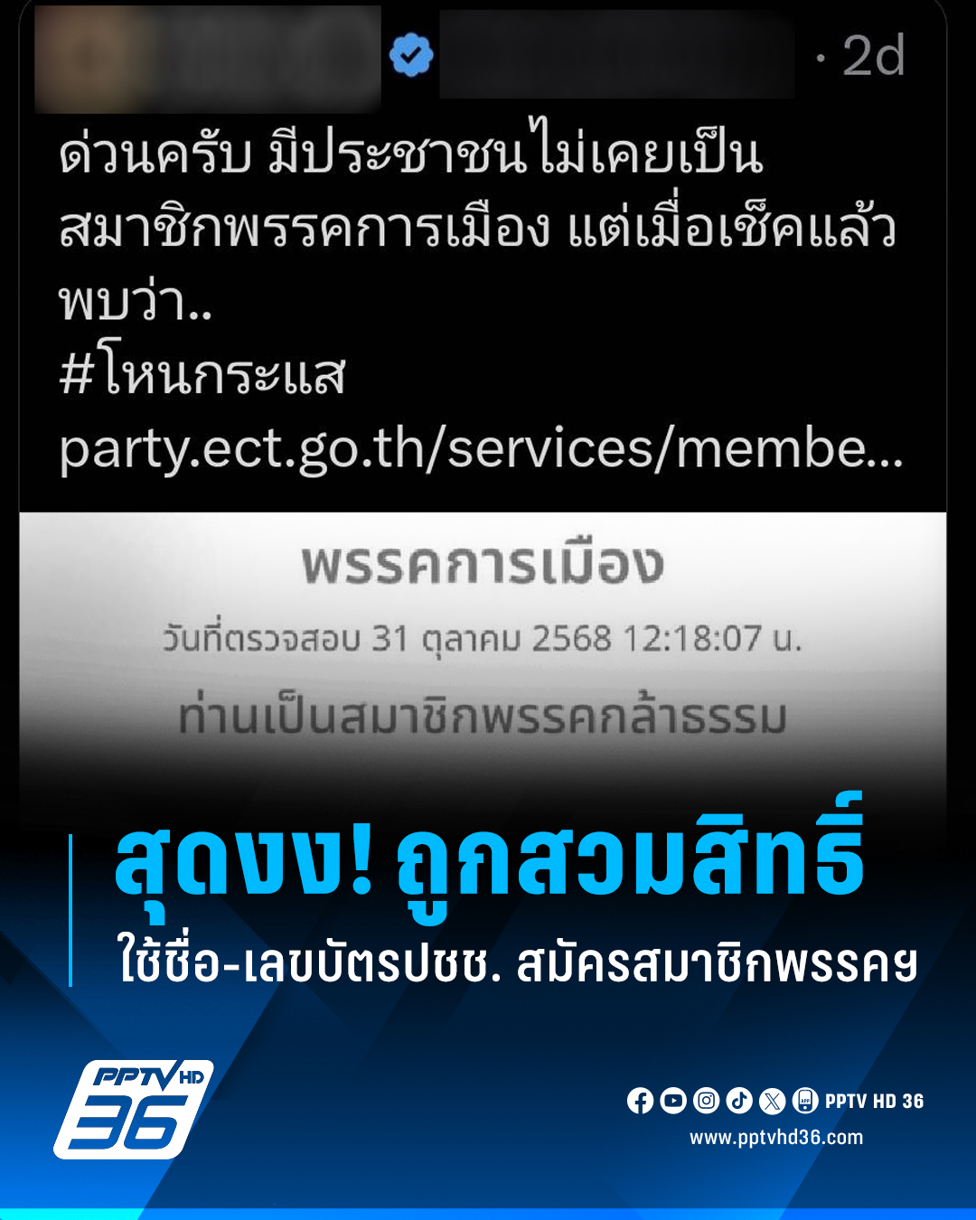 ประชาชนโวย ถูกสวมสิทธิ์แอบอ้าง ใช้ชื่อ - เลขบัตรปชช. สมัครสมาชิกพรรคการเมือง งงถ้วนหน้า สมัครตอนไหน เตือนรีบเข้าไปตรวจสอบกับ กกต.