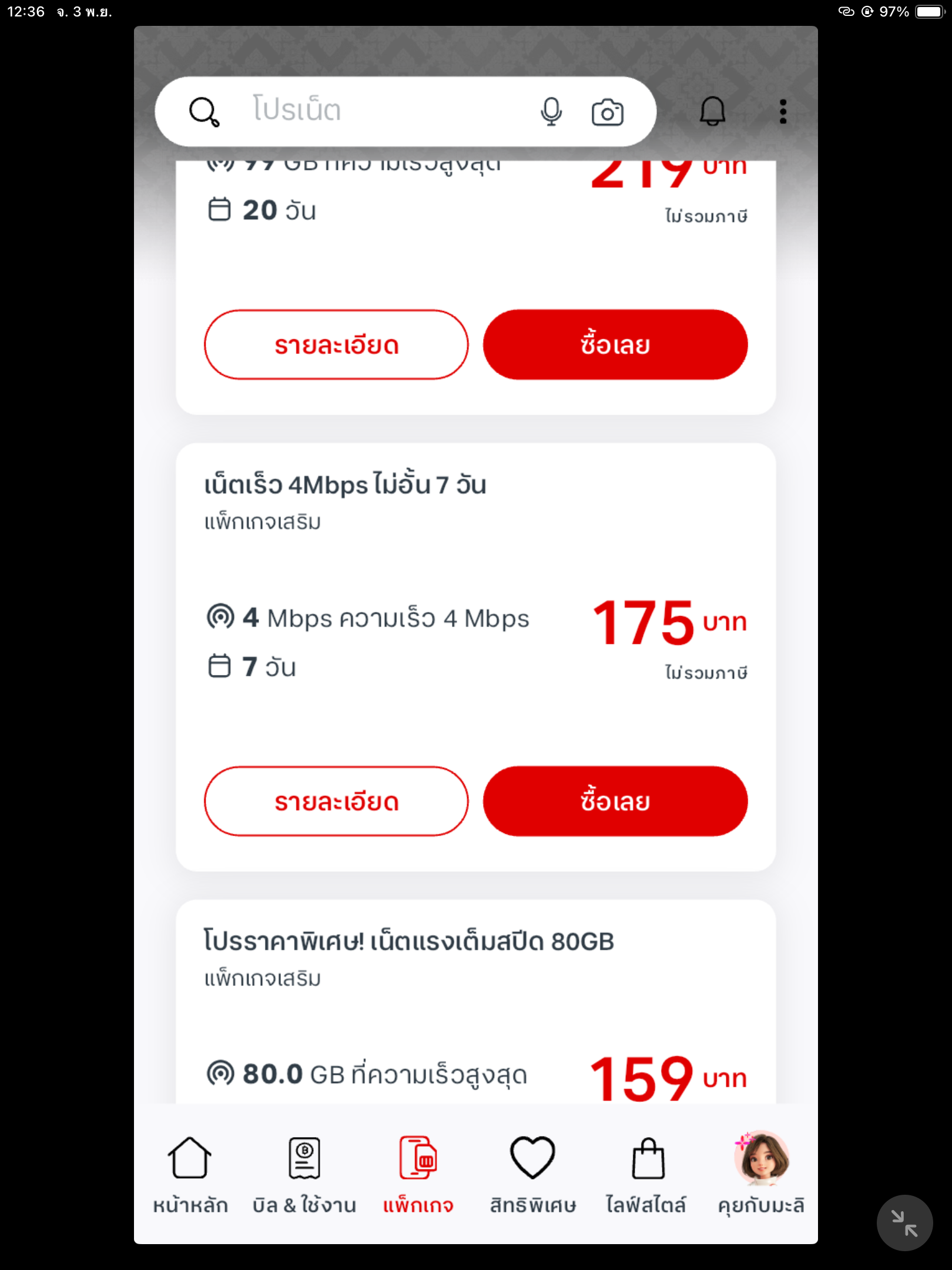 สดๆร้อนๆครับในแอพทรูมีโปรแนะนำให้เป็นเน็ต 30 Mbps 220 ฿ (ไม่อั้นใช่รึป่าวครับบอกหน่อย) แล้วแต่เดิมตอนนั้นผมมีตังอยู่ในเบอร์ 22.31 ฿ แล้วก็เติมตังไปเพื่อให้ครบจำนวนเงินที่จะสมัครโปร ตัว 30 Mbps นี่ได้เติม ไป 215 ฿ เนื่องจากระบุไว้ว่า รวมภาษี 235.4 ฿ ผมก็โอเคแต่พอเติมเงินนเข้าไปเท่านั้นแหละเหลี่ยมโปรหาย แล้วทีนี้ทำไงครับ ทรูออกมาบอกหน่อยแล้วที่ผมตั้งใจเติมตังเข้าไปเพื่อสมัครแพ็คนี้แต่ทำไมเติมตังไปละหาย แคเสี่ยยววินาทีที่ผมเติมไปเหลี่ยมมาเปลี่ยนโปรไปเฉยๆแบบนี้ได้หรอ คุณมาหลอกผมได้ไง