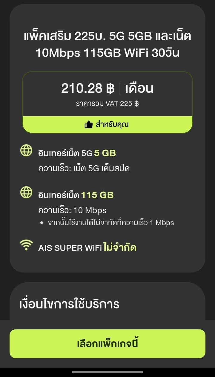 สอบถามเรื่องเเพ็กเกจ AIS หน่อยค่ะ