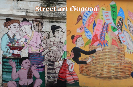 Street art ของประเพณีพื้นถิ่นภาคเหนือให้พวกเราได้เก็บภาพกันก่อนกลับที่พัก📸