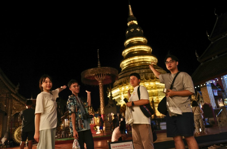 เดินเท้ากลับมาที่วัดพระธาตุหริภุญชัยฯ อีกครั้งหนึ่ง