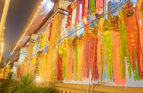 โคมไฟหลากสีที่ประดับตลอดแนวลานพระธาตุ