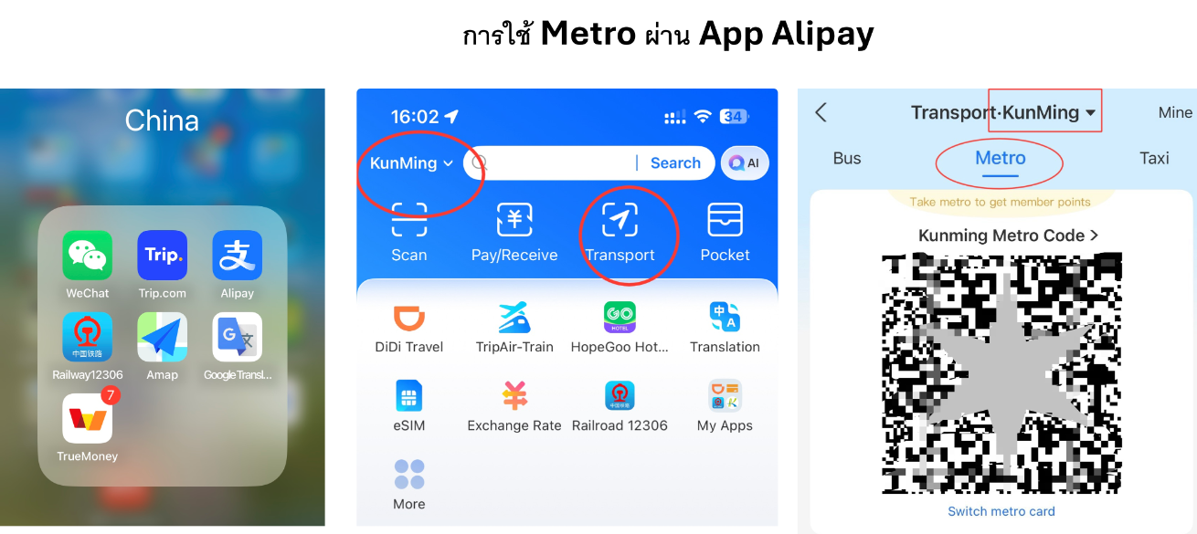 การเดินทางเข้าเมืองคุนหมิง จากสนามบินช่างชุ่ยนะคะ การเดินทางเข้าเมือง มีหลายวิธี ทั้ง บัส DIDI และ Metro สำหรับเราจะแนะนำการเดินทางด้วย metro นะคะ เราเลือกวิธีนี้เพราะประหยัดค่ะ ค่าโดยสาร ประมาณ 5-7 หยวน สะดวกมากๆโดยการ scan QR code ผ่าน Alipay ไม่ต้องซื้อบัตรไม่ต้องใช้เงินสด ระบบจะตัดผ่านบัตรที่เราผูกกับ Alipay เลย App ต่างๆที่จำเป็นสำหรับไปจีนครั้งนี้ค่ะ มีแค่นี้ก็เพียงพอสำหรับการเดินทางที่สะดวกมากๆ