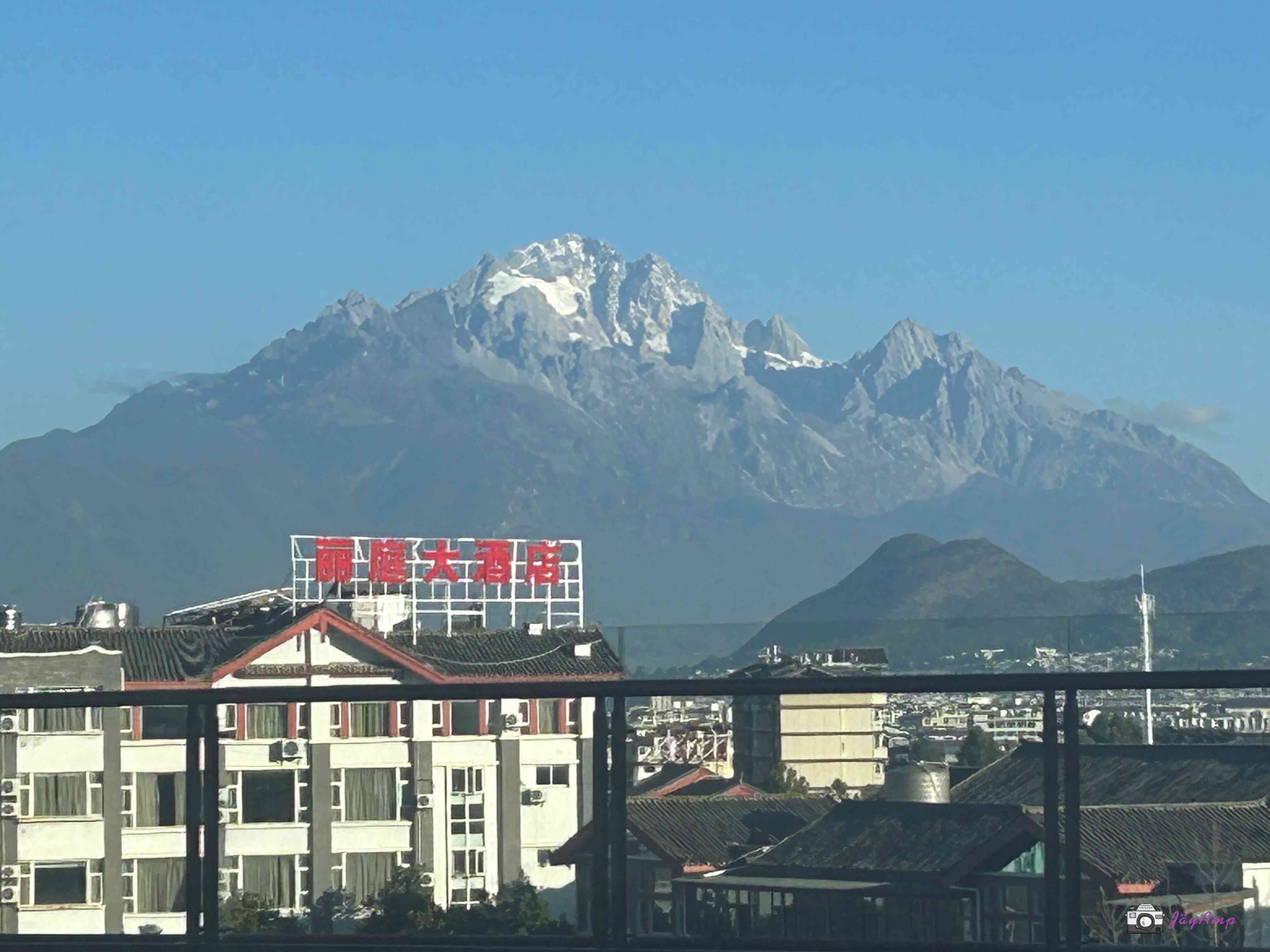 วิวจากบนสถานีรถไฟก็สามารถเห็นภูเขาหิมะมังกรหยกได้ค่ะ ถ้าฟ้าเปิด