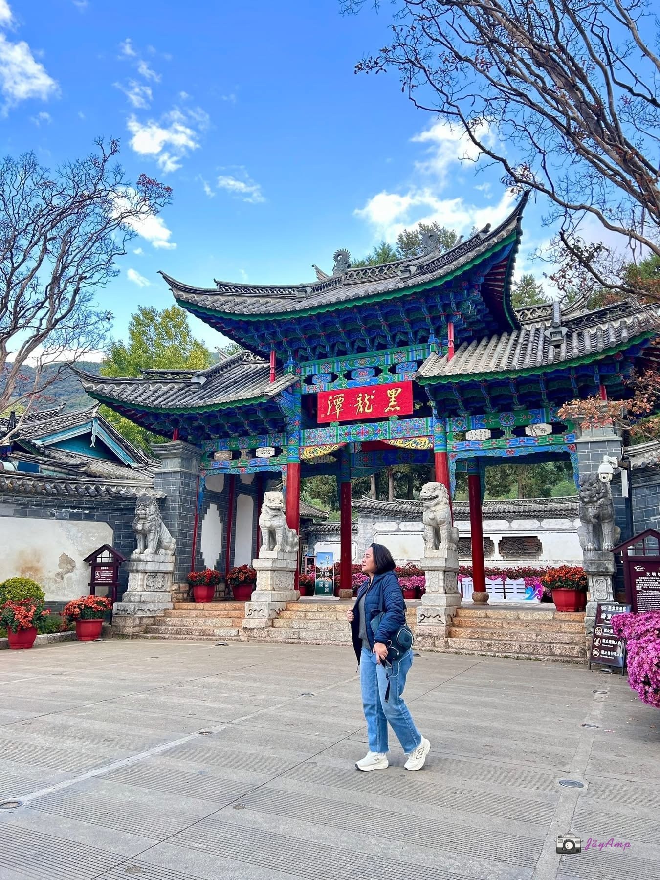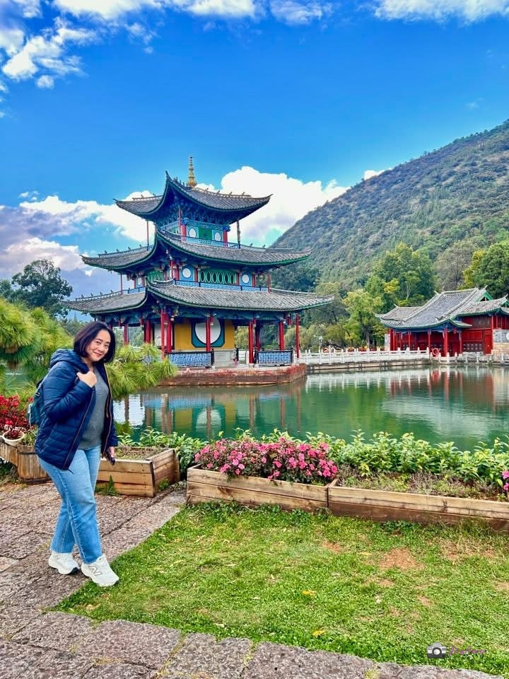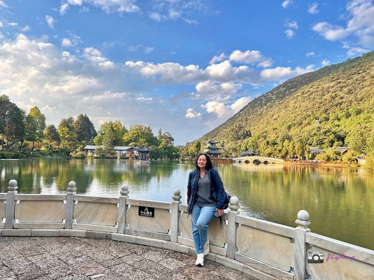 หลังจากดื่มดำกับบรรยากาศแล้วก็ไปต่อที่สระน้ำมังกรดำ Black Dragon Pool (黑龙潭(西北门) สร้างมาตั้งแต่สมัยราชวงศ์ชิง ขึ้นเป็นมรดกโลกโดยยูเนสโกด้วยค่ะ ที่นี่เค้าว่ามีมังกรดำอาศัยอยู่เป็นเทพเจ้าแห่งน้ำ แลนด์มาร์ก ที่ต้องมาอีกแห่งของเมืองลี่เจียงค่ะ ปกติถ้าฟ้าเปิดจะมองเห็นภูเขาหิมะมังกรหยกเป็นฉากหลัง แต่วันที่เราไป ครึ้มฟ้าครึ้มฝนทำให้ไม่เห็น แต่ก็ยังสวยและสงบมากอยู่