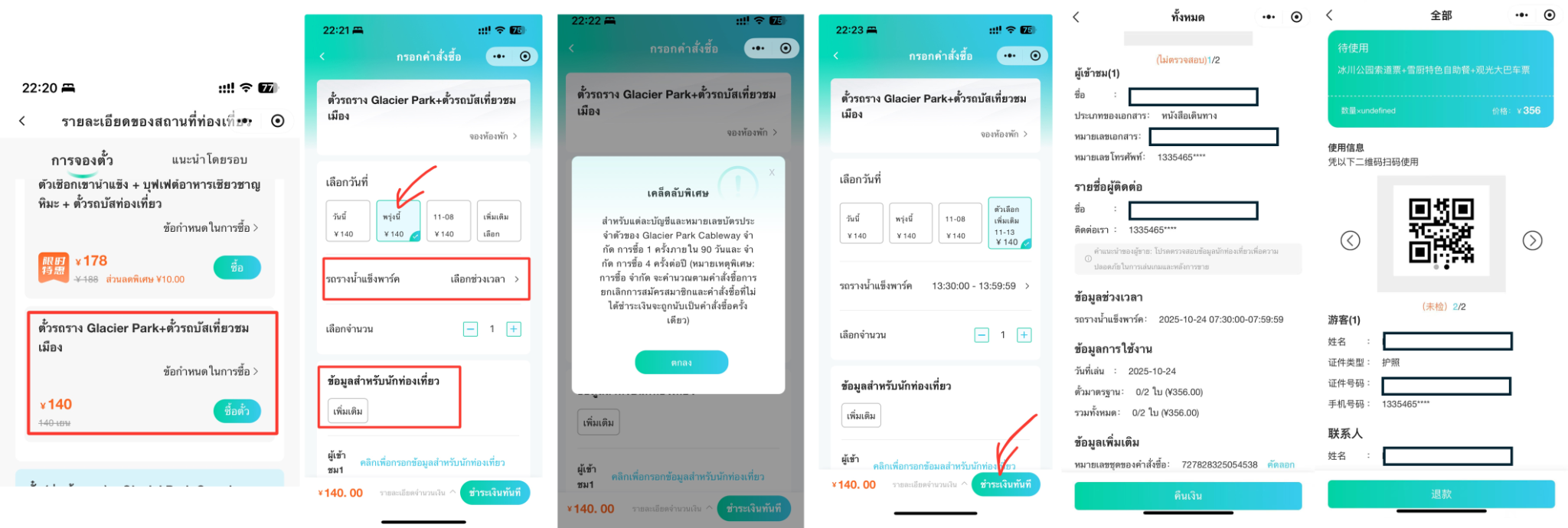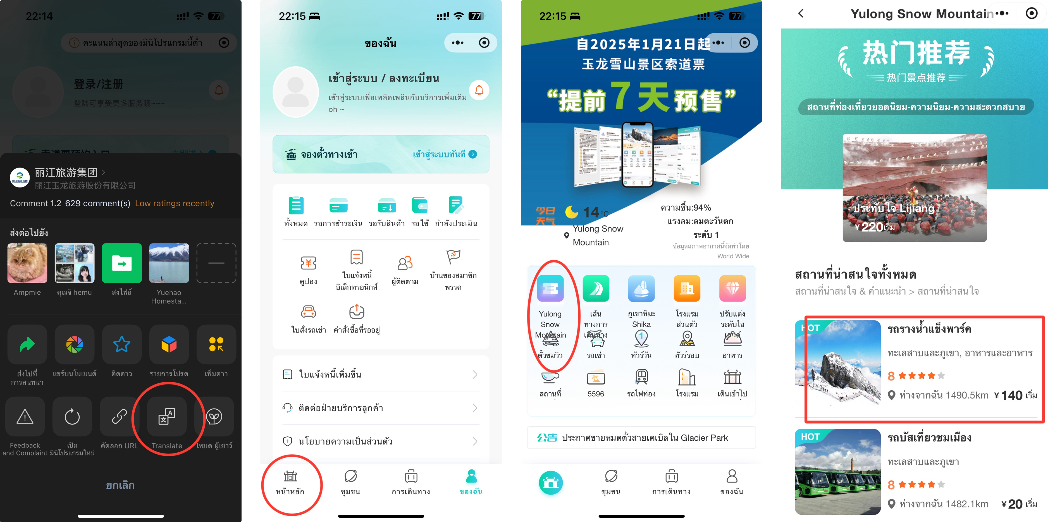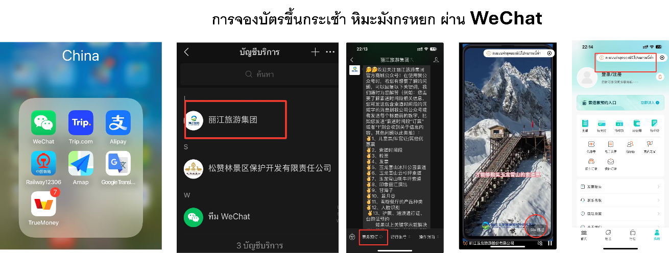 วันนี้ตื่นแต่เช้าตรู่ ตี 5 เพราะจะไปขึ้นภูเขาหิมะมังกรหยก เราจองบัตรผ่าน WeChat ทางการของอุทยานมาเอง ราคาถูกกว่าทัวร์ และตัวแทนต่างๆมาก โดยเลือกขึ้นกระเช้าใหญ่ หรือ Glacier Park มีขั้นตอนดังนี้ค่ะ add เพื่อนaccount ทางการของอุทยาน เลือกจองตามขั้นตอนนี้ได้เลย ซึ่งการจองผ่านทางนี่ราคาจะแยกเป็นแต่ละการเข้าชมค่ะ โดย 140 หยวน จะรวมค่ารถบัสรับ-ส่งภายในอุทยาน