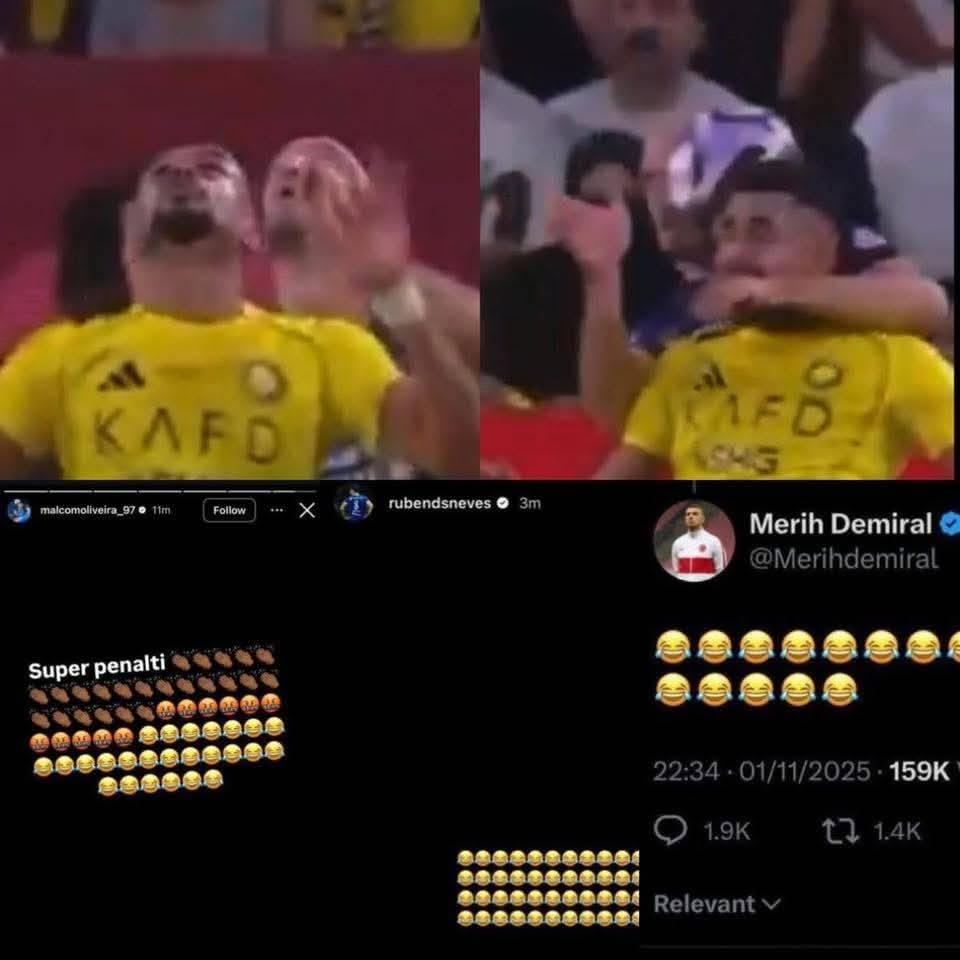 เช่น มัลคอมโพสต์โพสต์ว่า สุดยอดจุดโทษพร้อมอีโมจิ ปรบมือ,โกรธ,หัวเราะ นอกจากนั้นยังมี ริยาร์ด มาเรซ , เดอมิราล ,หรือแม้แต่รูเบน เนเวส ลูกทีมโด้ในทีมชาติก็ออกมาโพสต์เช่นกัน