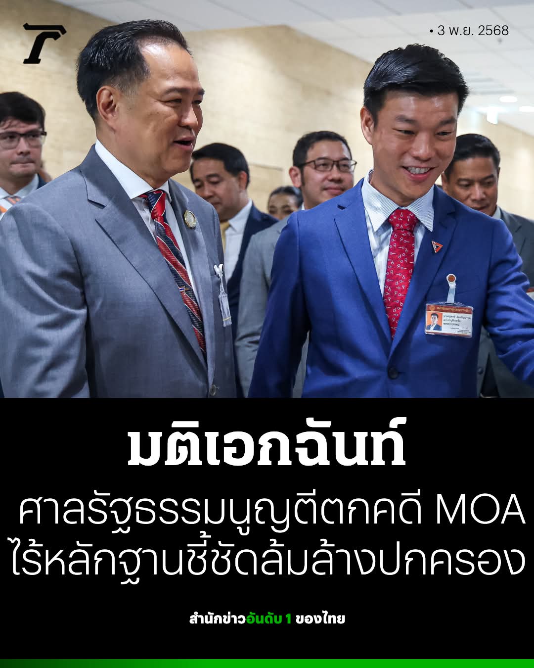 ศาลรัฐธรรมนูญสั่งไม่รับ 2 คำร้อง! ปม “เท้ง ณัฐพงษ์ – พรรคประชาชน” ทำ MOA กับ “อนุทิน” ไม่เป็นการล้มล้างการปกครอง!https://www.pptvhd36.com/news/การเมือง/260671..วันที่ 3 พ