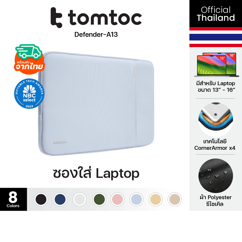 💻⌨️ ซองใส่โน๊ตบุ๊ค Tomtoc Defender-A13 กันกระแทก CornerArmor x4 พอดี MacBook 13–16 นิ้ว ซิป YKK กันละอองน้ำ 🔒🧳