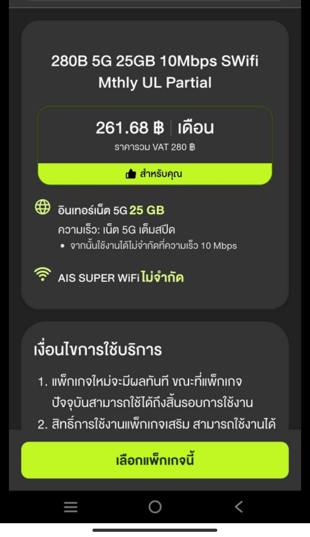 เนื่องจากที่ก่อนหน้านี้ผมใช้ AiS ไม่ลดสปีด ไม่อั้น4G 30Mbps / 235.- อยู่ (โทรศัพท์เครื่องที่แชร์ก็ลองรับแค่4G)ใช้มานานนนนนมากหลายปีเพราะใช้แชร์เน็ตด้วย จู่ๆ ทางค่ายก็เปลี่ยนโปรให้ เป็น100GB ลดสปีด 1Mb