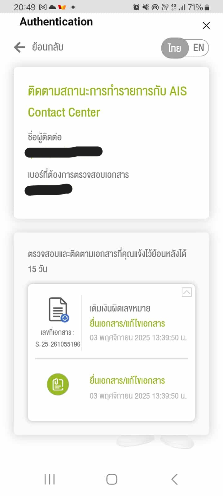เอกสารก็ยื่นไปแล้วงงการดำเนินงานของ AIS ติดต่อก็ยากมากครับ