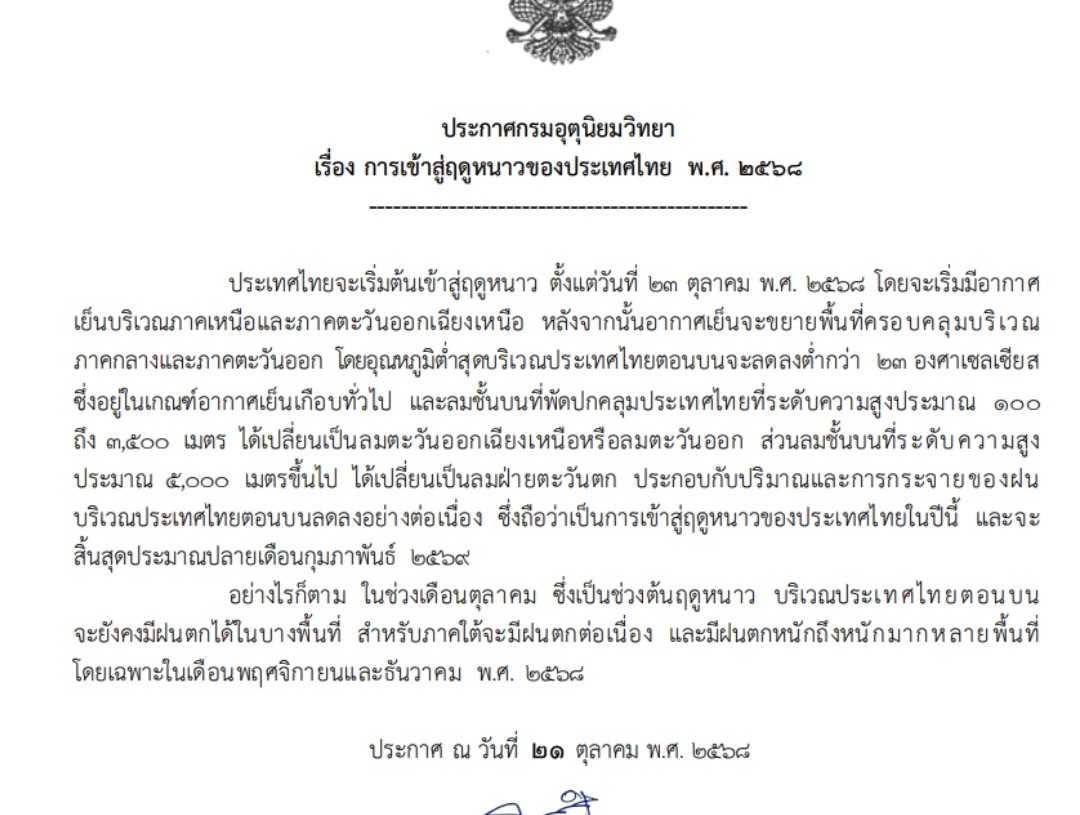 ประกาศกรมอุตุนิยมวิทยา เรื่อง พายุ “คัลแมกี” และฝนตกหนักถึงหนักมากบริเวณประเทศไทย ฉบับที่ 2 (322/2568) ------------------------ เมื่อเวลา 04.00 น. ของวันนี้ (5 พ.ย. 68) พายุไต้ฝุ่น &ldq