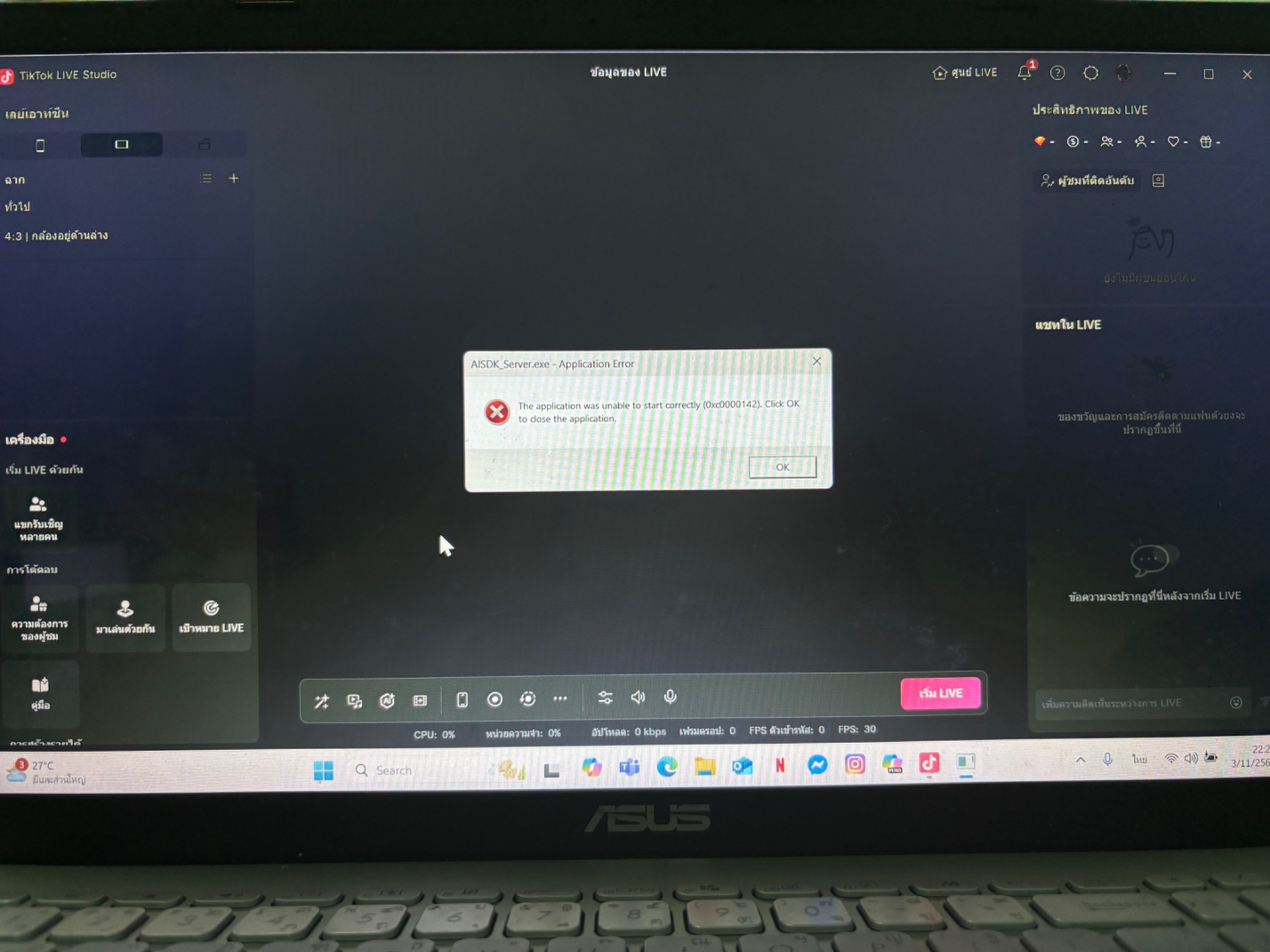เรื่องของเรื่องคือจะไลฟ์ TikTok ในโน๊ตบุ๊ค เลยโหลด TikTok studio มา แต่กดจะกดเข้าหน้าที่จะจัดกาหน้าไลฟ์ มันขึ้นเออเร่อตลอด หรือว่าเพราะโน๊ตบุ๊คเราเก่าไปสำหรับโปรแกรม หากใครรู้วิธแก้บรบกวนบอกหน่อย แต่ถ้าเป็นเพราะโน๊ตบุ๊คเก่าเราจะได้เลิกพยายาม ตามรูปที่แนบเลย