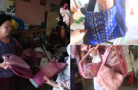 โดยก่อนที่จะไปนั้น ป้ายาก็ให้พวกเราได้ชมผลิตภัณฑ์ของกลุ่ม ไม่ว่าจะเป็น ผ้าซิ่นลายละกอนไส้หมู ที่เป็นเอกลักษณ์ลำปาง, กระเป๋าและย่าม