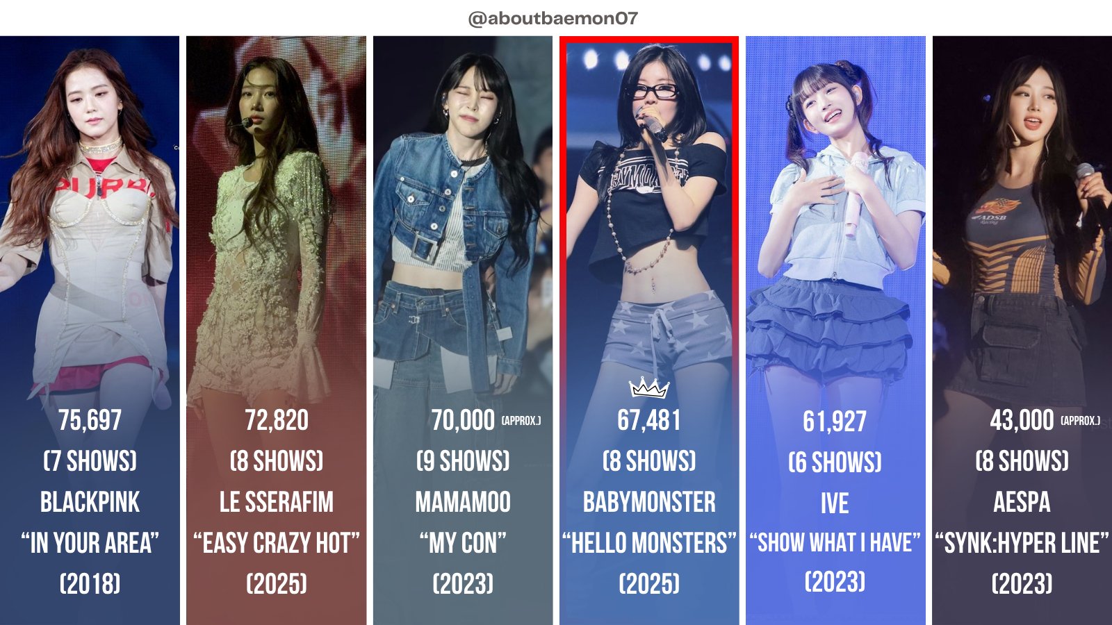 BABYMONSTER คือวงเคป๊อปเกิร์ลกรุ๊ปที่จัดคอนเสิร์ตเดบิวต์ในอเมริกามียอดคนดูสูงสุดเป็นอันดับ 4 ในประวัติศาสตร์วงการเคป๊อป