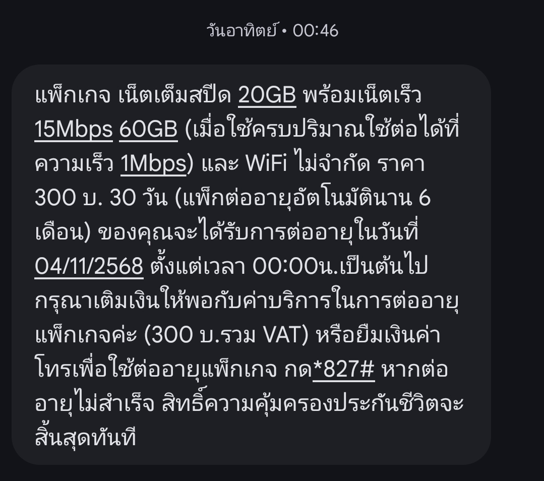 เติมเงินแล้วตัดเน็ตเองครับ ไม่ได้สมัครแพ็กเกจนี้ไว้อยู่แล้วครับ แต่ตัดให้เอง