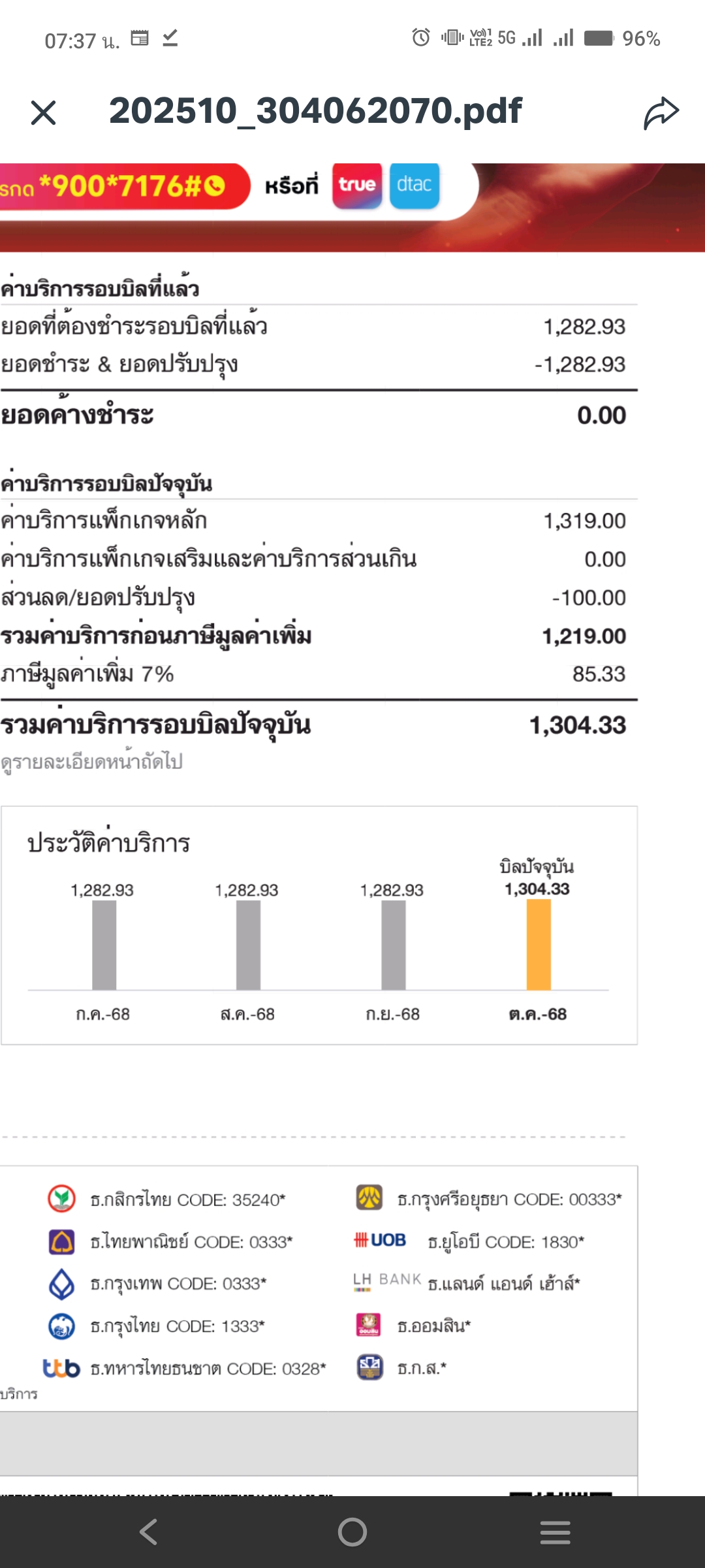 ทุกเดือนมีค่าบริการ 1282 บาท แต่เดือนนี้ 1304 บาท