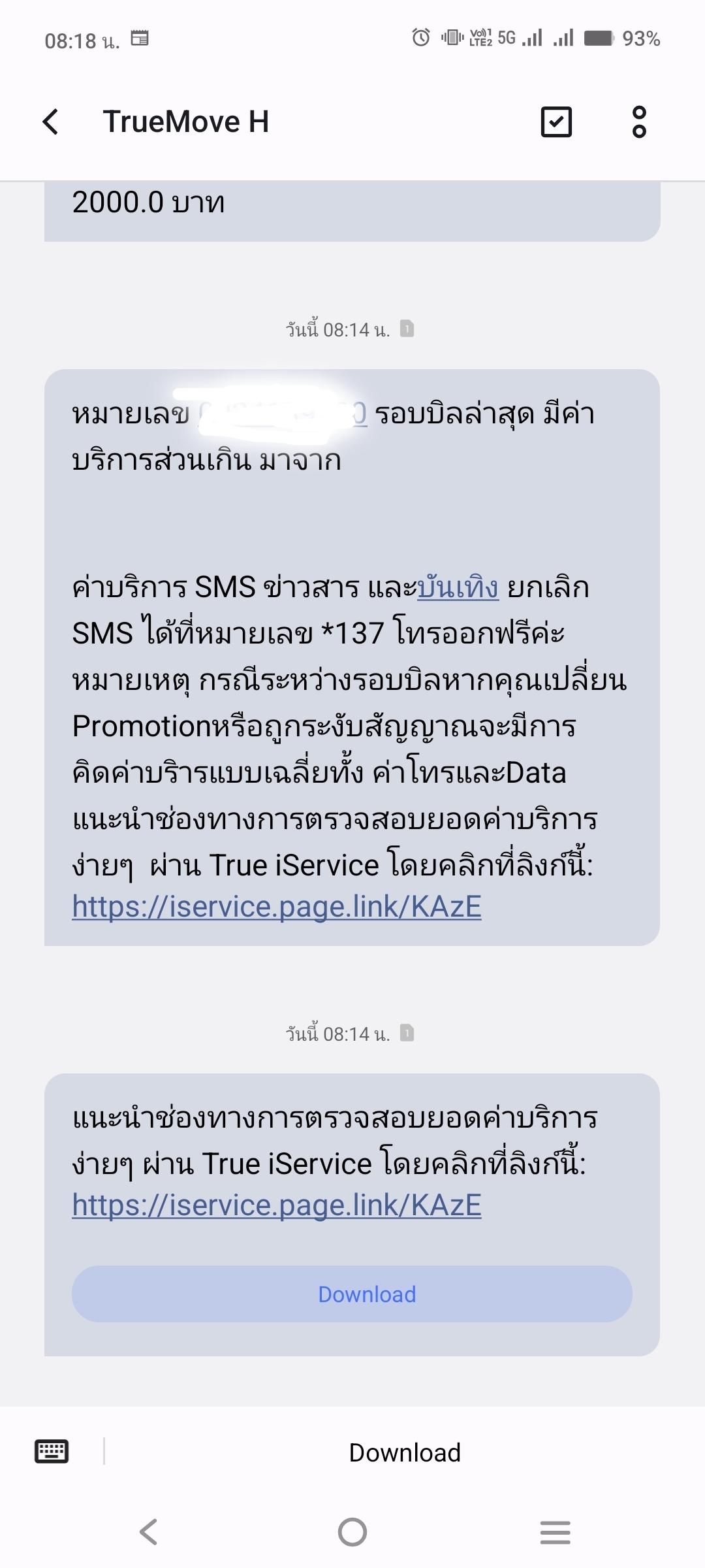 True บล็อคsmsที่ถูกคิดเงิน ไปแล้วยังถูกหักเงิน