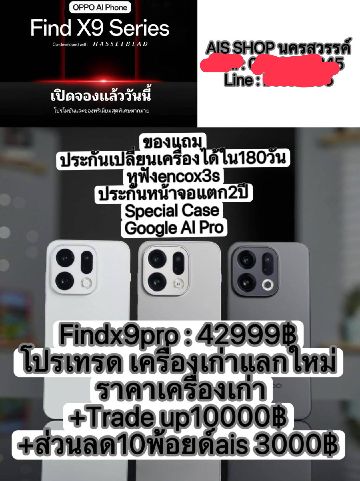 จอง OPPO Find x 9 Pro กับ AIS ไว้ สอบถาม Cash Back ค่ะ