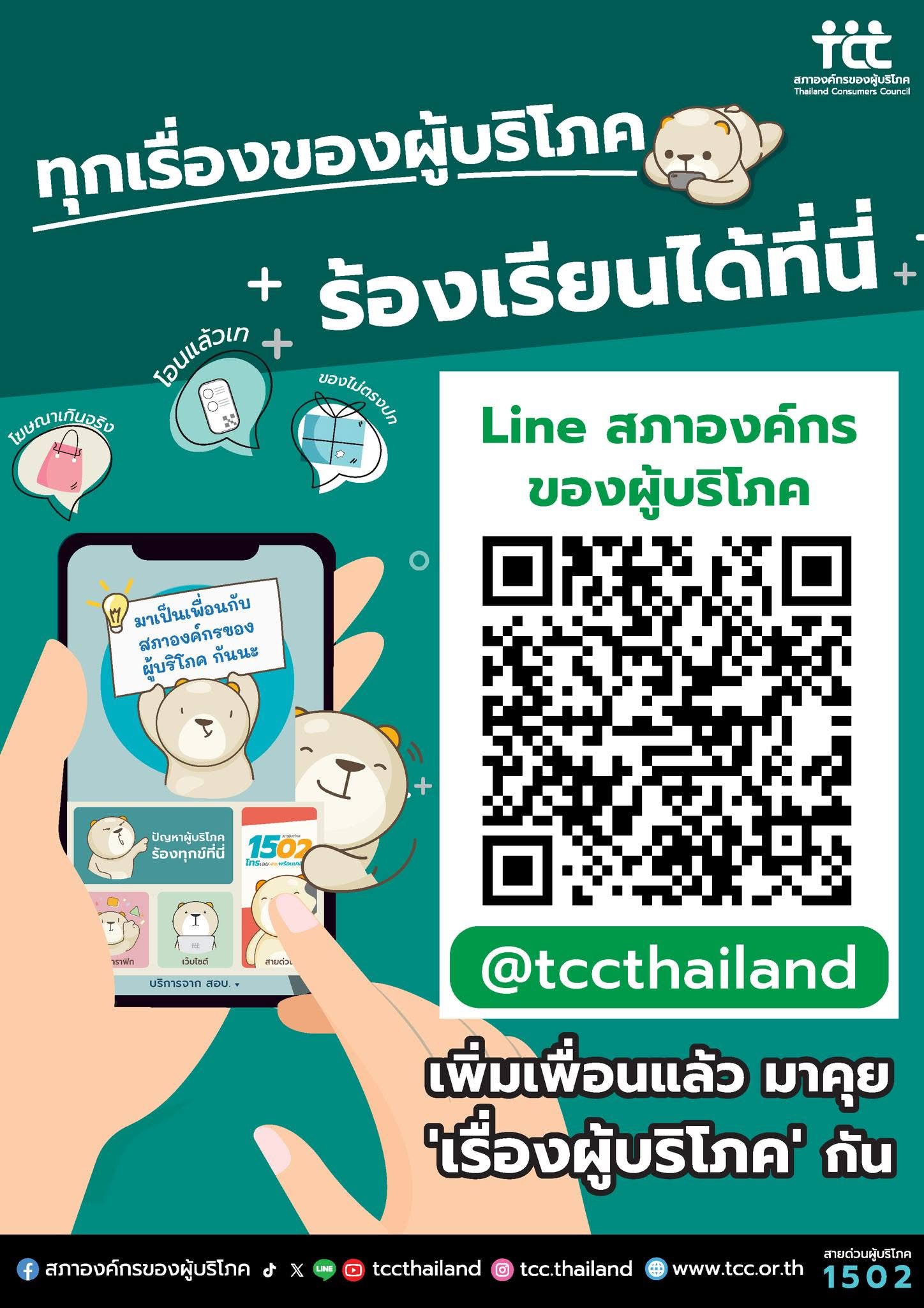 มาเป็นเพื่อนกับสภาองค์กรของผู้บริโภคแบบใกล้ชิดกันกว่าเดิม โดยเพิ่มเพื่อนใน LINE ง่าย ๆ เพียงพิมพ์ @tccthailand ที่ไลน์ หรือกดลิงก์