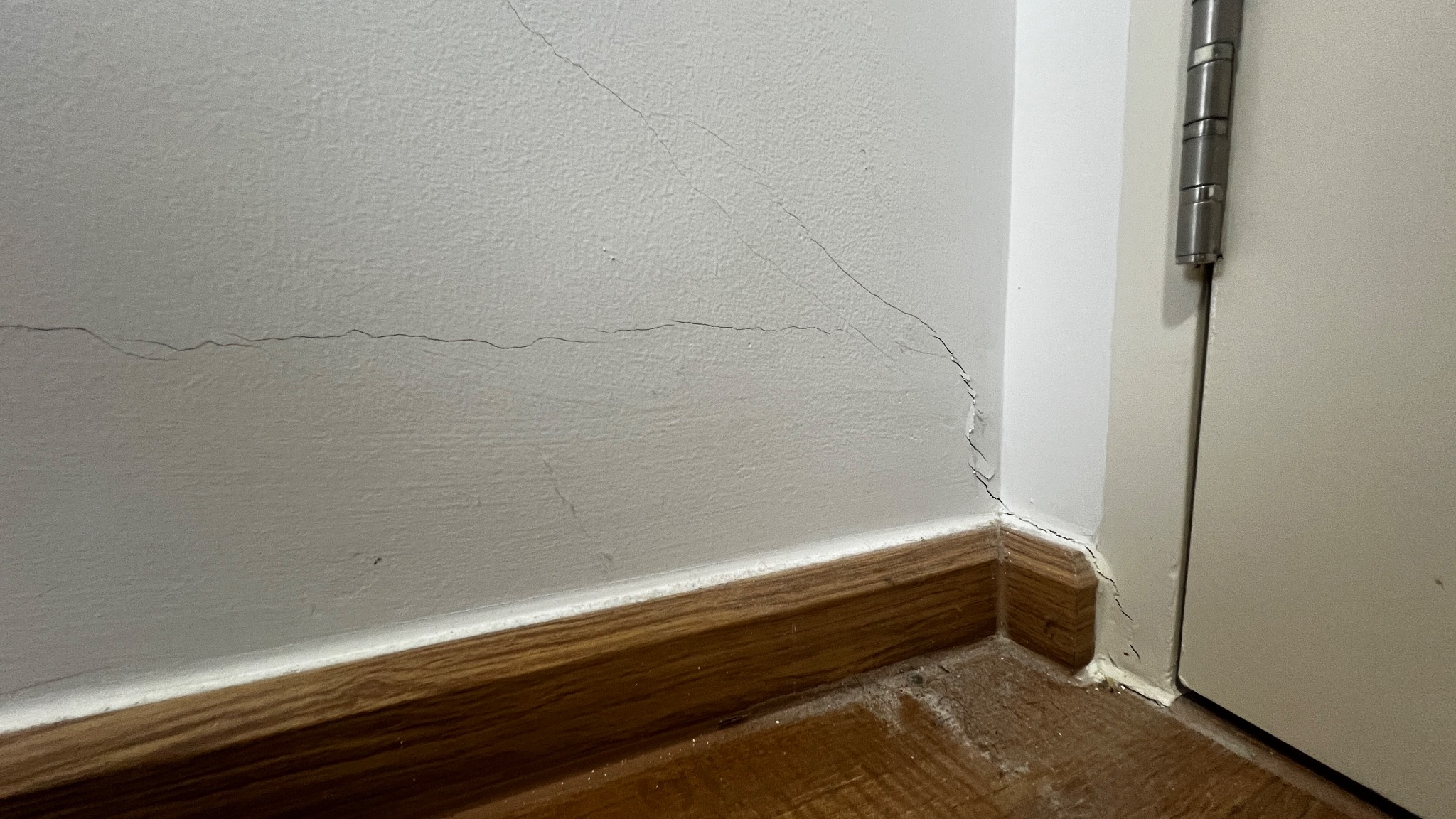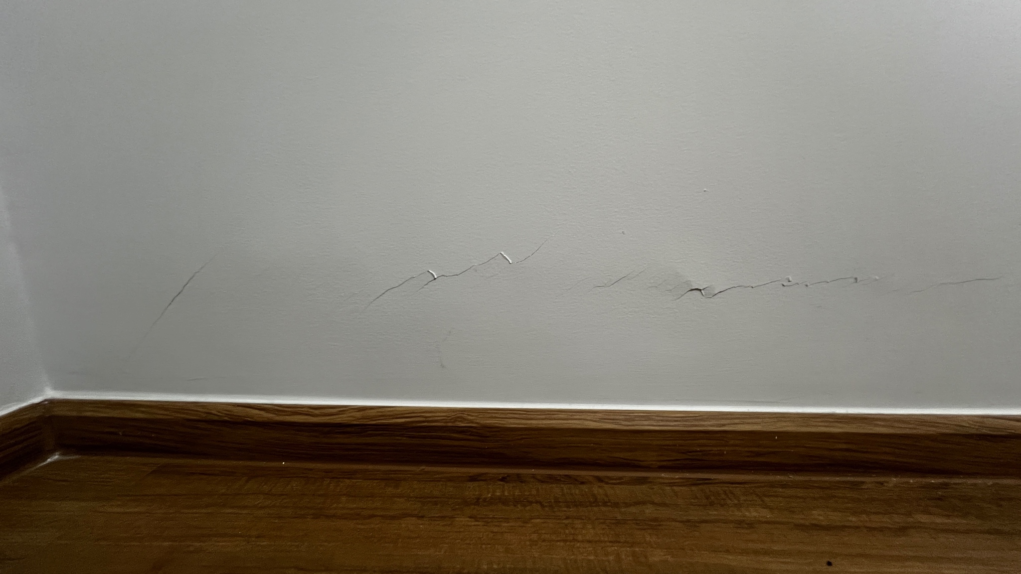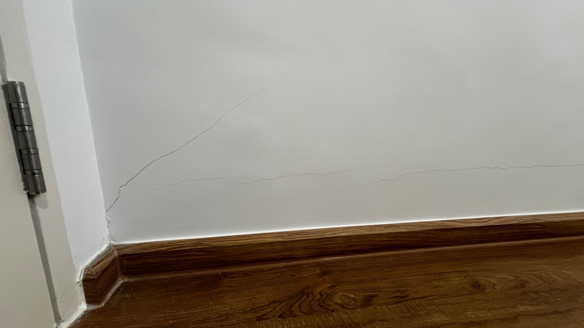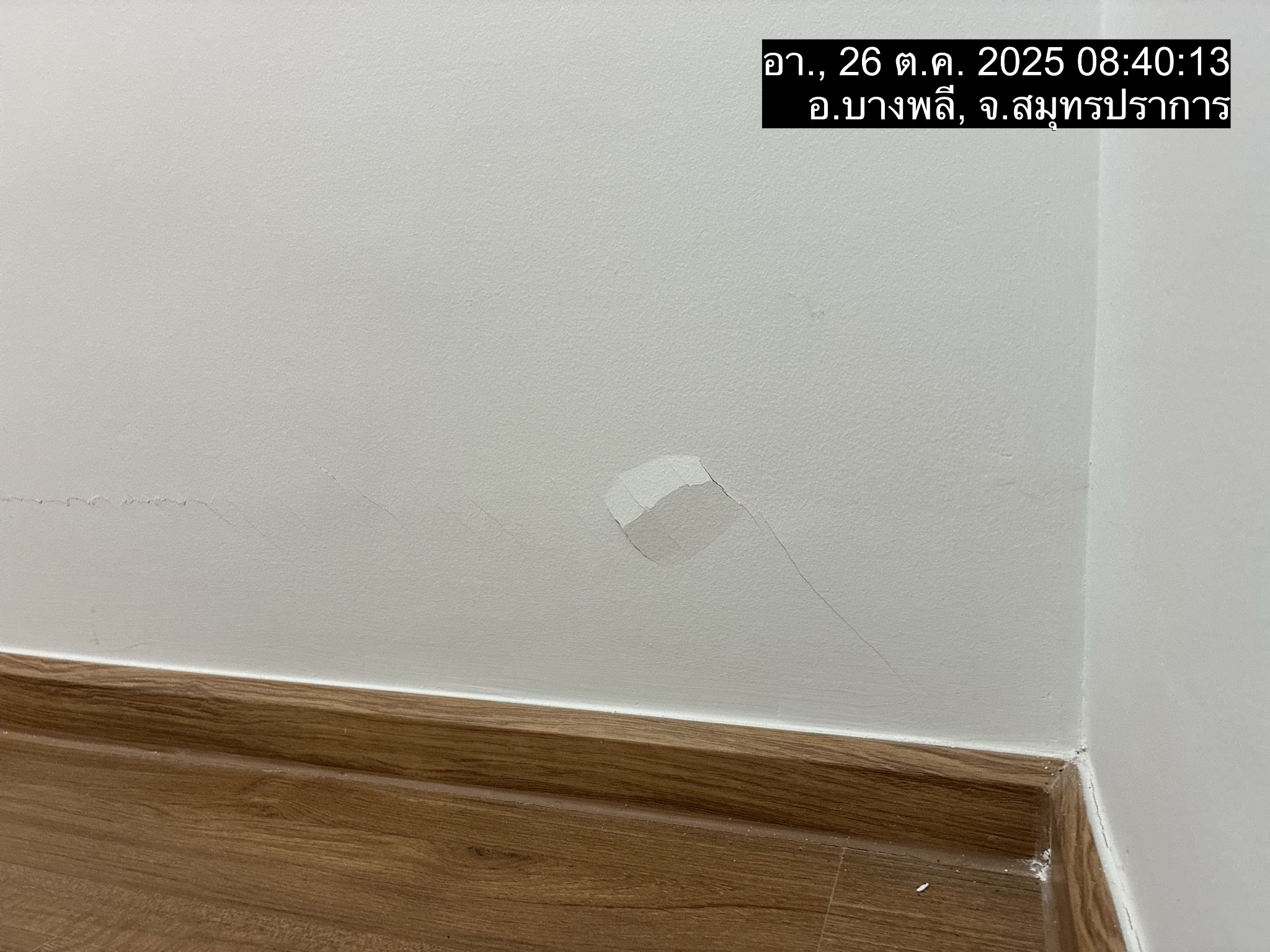 มาถึงเรื่องคุณภาพบ้าน ผมเริ่มเข้าอยู่ช่วงเดือนมิถุนายน 2566 ตอนนี้อยู่มา 2 ปี 5 เดือน เจอปัญหา ผนังห้องร้าวยาวทะลุสองฝั่ง ระหว่างห้องนอน 2 กับห้องนอน 3 แถมมีรอยราวแนวเฉียงใกล้ประตูอีกด้วย