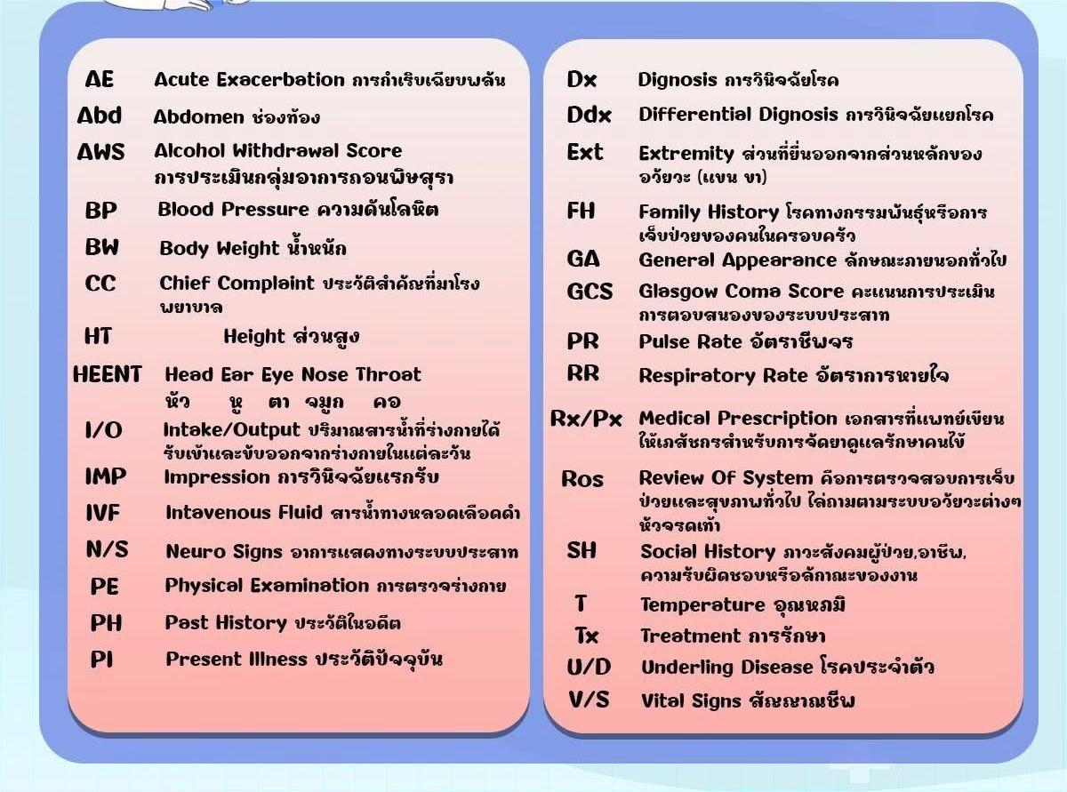 คำย่อในการบันทึกทั่วไป: (เจอแน่ๆ ในการเรียนเวชระเบียน)