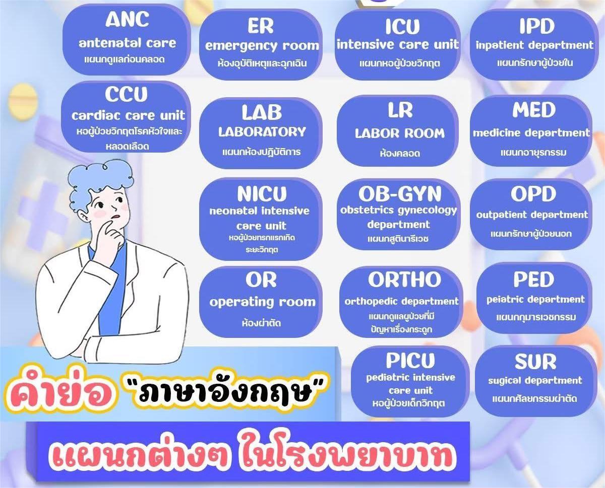 คำย่อแผนกในโรงพยาบาล: (ช่วยให้เข้าใจระบบการทำงาน)
