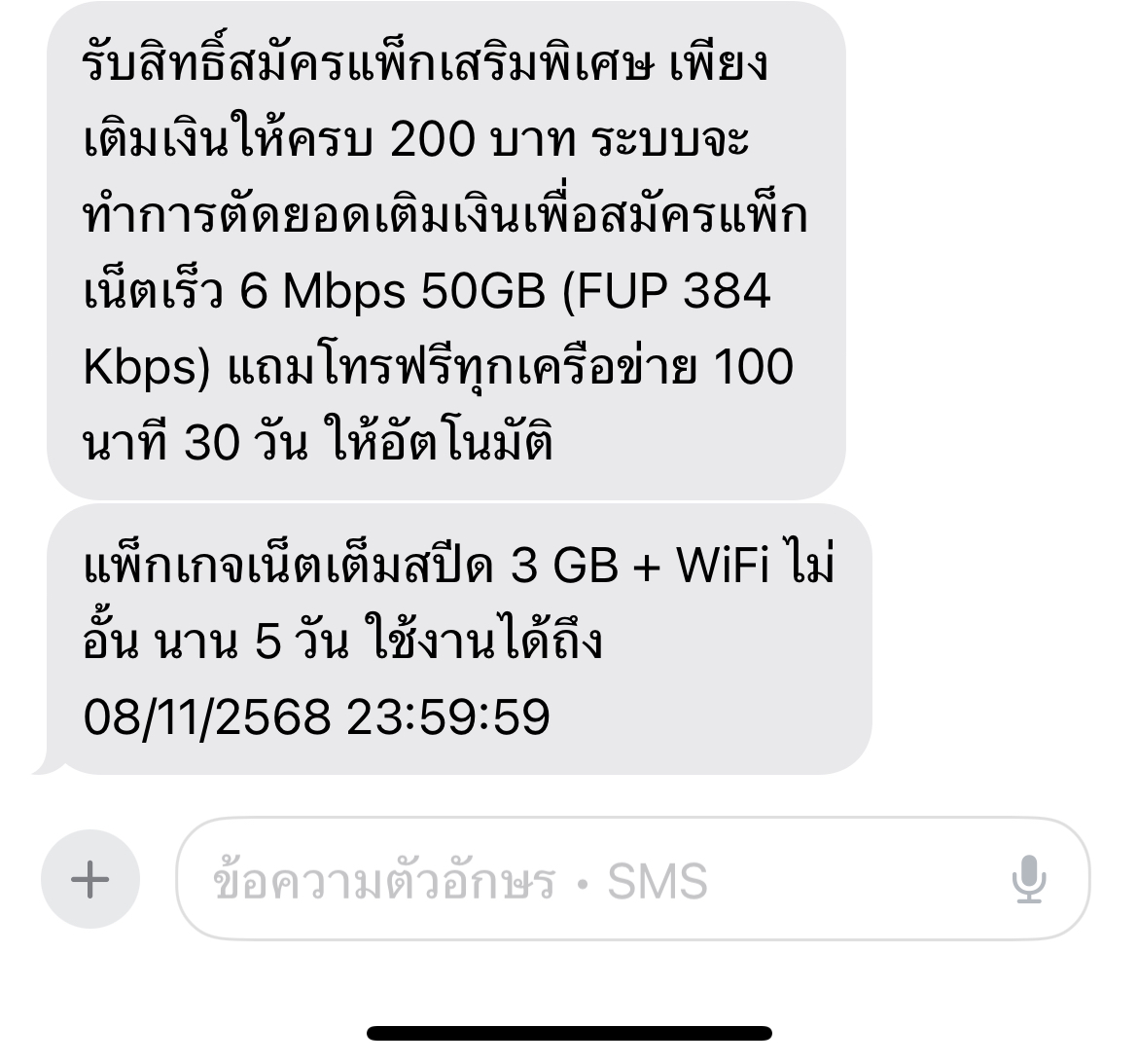 สวัสดีค่ะพอดีเราเติมเงินเข้าเบอร์มือถือ แต่ว่า SMS ไม่เข้า เติมไป300 จะสมัครเน็ตลองเช็คเน็ต *900# ข้อความก็ไม่แจ้งเตือนในแอพข้อความ รบกวนทรูลช่วยตรวจสอบให้หน่อยค่ะ ว่าสรุปหักเน็ตอัติโนมัติไปหรือยัง หร