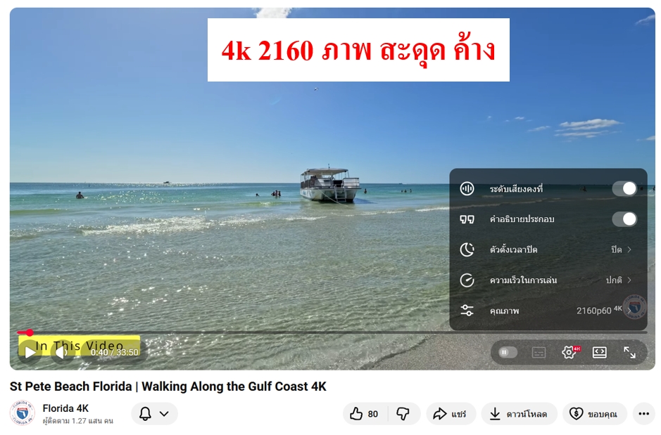 3. ปัญหานี้ไม่น่าเป็นที่อินเตอร์เน็ตเพราะสามารถดูช่อง YOUTUBE 4 K หลาย ๆ ช่องได้ปกติ