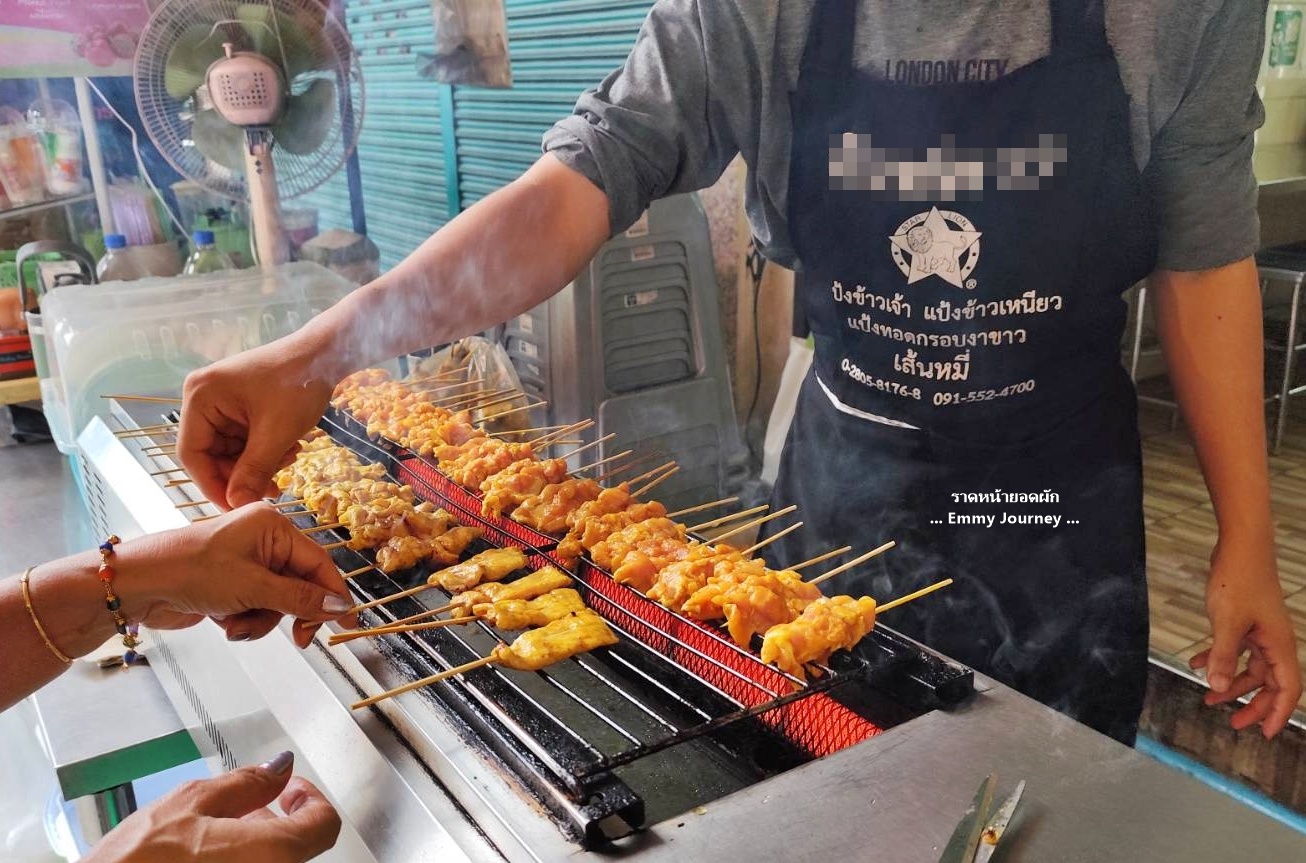 หน้าร้านปิ้งหมูสะเต๊ะขายด้วย กลิ่นหอมมาก