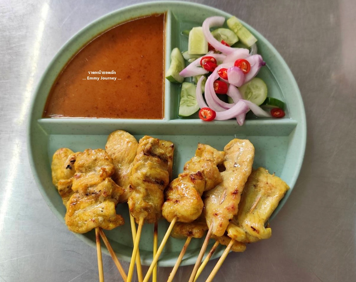 เราสั่งหมูสะเต๊ะ 10 ไม้ ราคา 100 บาท เนื้อหมูสะเต๊ะชิ้นใหญ่พอควร นุ่ม หอม น้ำอาจาดอร่อย แต่เราว่าน้ำจิ้มยังไม่ค่อยถูกปากเรา มันใสไปนิดไม่ข้นเท่าไร