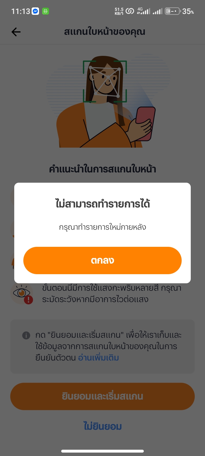 คือพยายามสแกนหน้าหลายรอบจนระบบบอกไม่สามารถทำรายการได้ค่ะบอกให้ไปลองทำบัตรใหม่ทั้งที่พึ่งทำบัตรมา