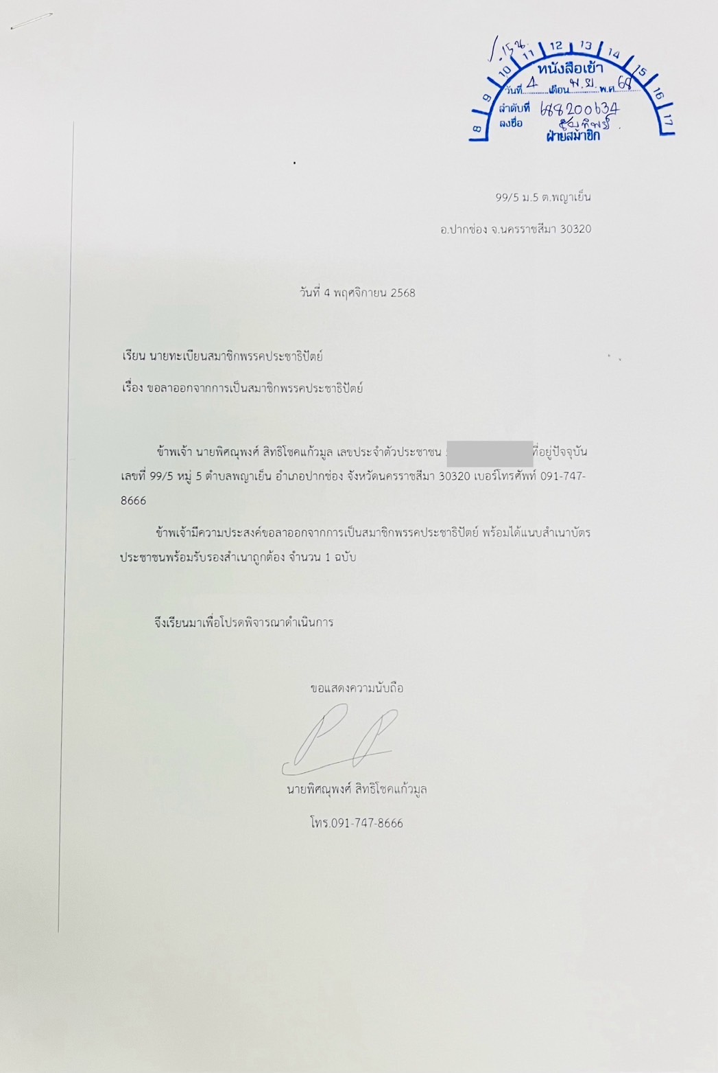 4 พ.ย.68 นายพิศณุพงศ์ สิทธิโชคแก้วมูล อดีตสมาชิกพรรคประชาธิปัตย์ โพสต์ข้อความผ่านเฟซบุ๊กส่วนตัว ประกาศลาออกจากพรรคประชาธิปัตย์ โดยระบุว่าเป็นการตัดสินใจที่ “ไม่ง่ายเลย” เพราะพรรคประชาธิปัตย์เปรียบเสมือนบ้านทางการเมืองที่ตนได้รับโอกาส ได้เรียนรู้ และเติบโตทางการเมืองตลอดระยะเวลาที่ผ่านมา