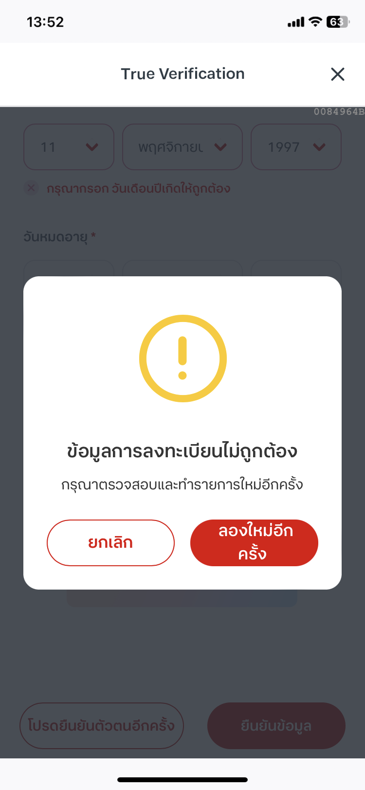 เข้าหน้ากรอกข้อมูล บปช.แล้วกดยืนยันแต่กลับบอกข้อมูลไม่ถูกต้อง ข้อมูลมาจากการถ่ายรูป บปช.
