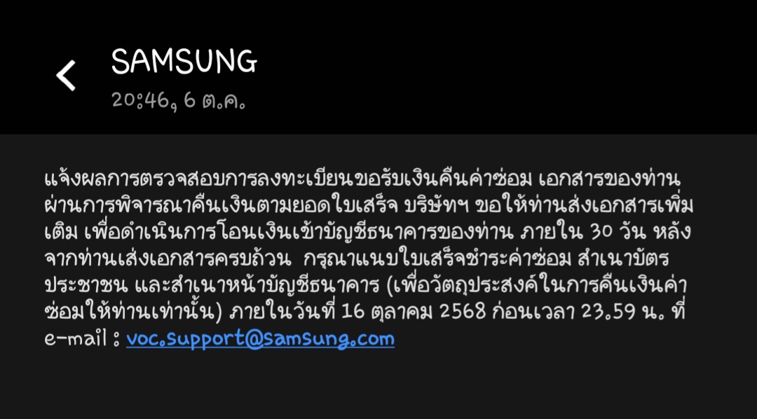 และได้ทำการส่งเอกสารไปในวันที่ 7 ต.ค. ดังที่แจ้งในข้อความ จากนั้นก็ไม่มีความคืบหน้าใด ๆ อีกเลยค่ะ จะติดต่อสอบถามก็ไม่ได้ ไม่มีเบอร์เฉพาะที่ดูแลส่วนนี้ สรุปจะเยียวยากันแน่ ๆ ใช่มั้ยคะ เลยอยากทราบว่ามีใครได้รับเงินคืนแล้วบ้างหรือยัง นานแค่ไหนถึงจะได้รับ เพราะนี่ก็รอมาจะครบเดือนแล้วค่ะ