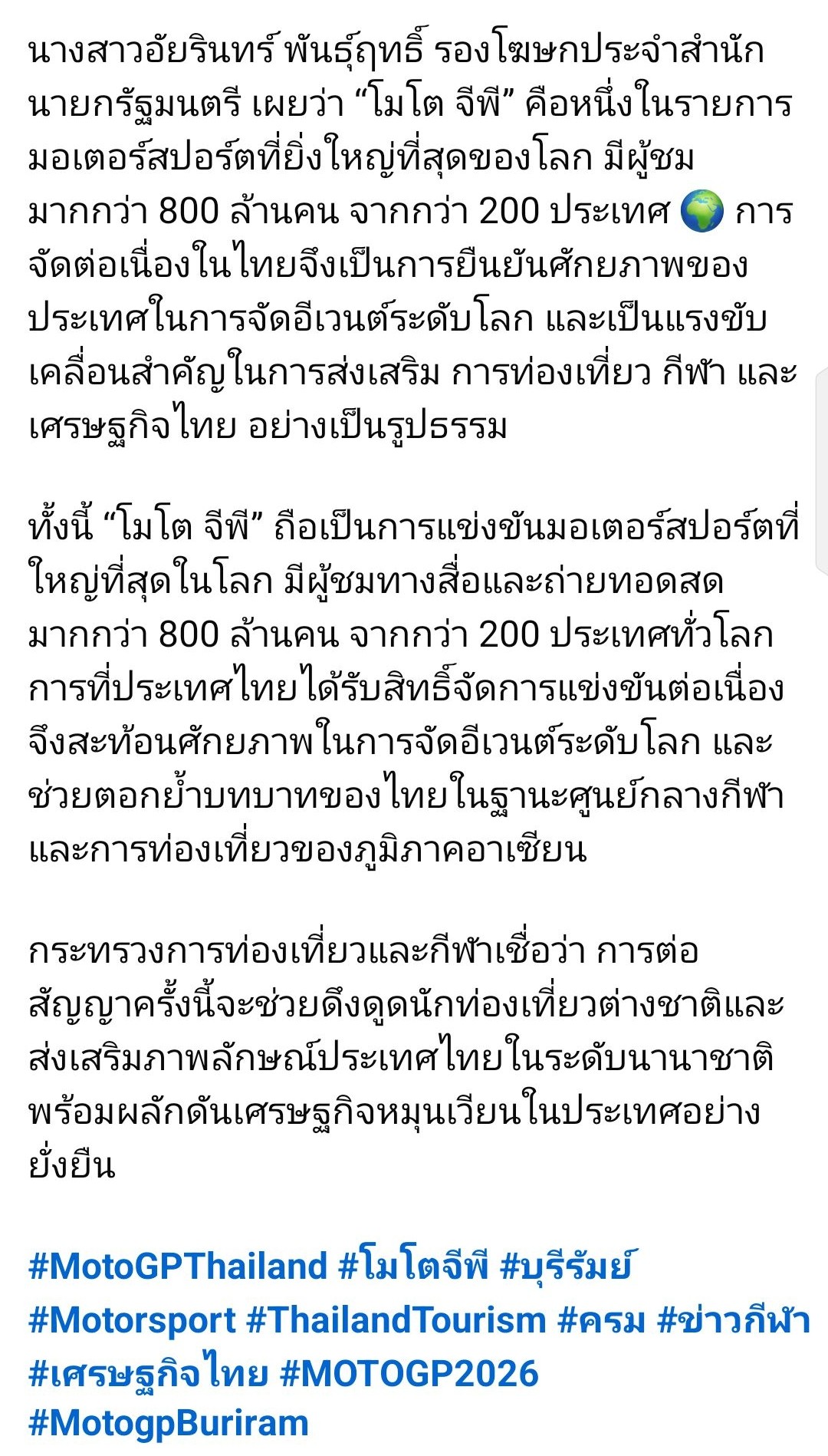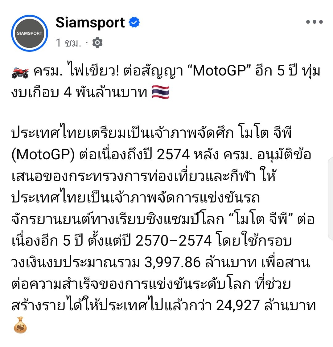 ✅ ครม. เห็นชอบไทยเจ้าภาพจัด "MotoGP" อีก 5 ปี งบเกือบ 4,000 ล้าน