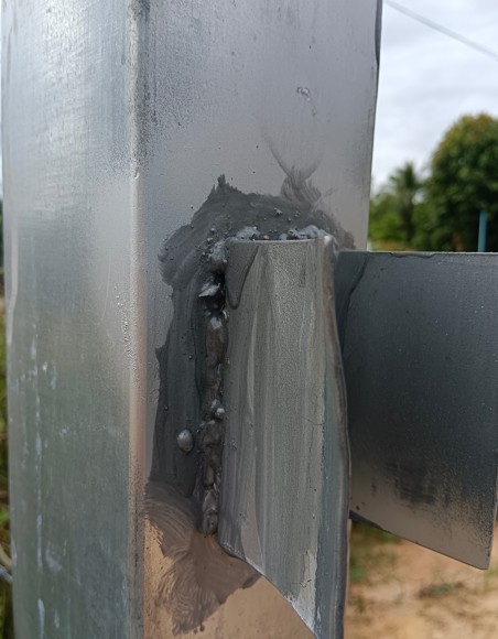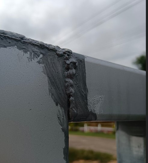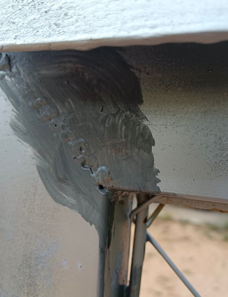 ช่างเอาเหล็กกัลวาไนซ์ มาอ็อก/เชื่อมต่อเป็นประตู แล้วตรงรอยเชื่อมต่อมีรูเล็กๆ ทาสีแล้วก็ยังปิดรูไม่สนิท