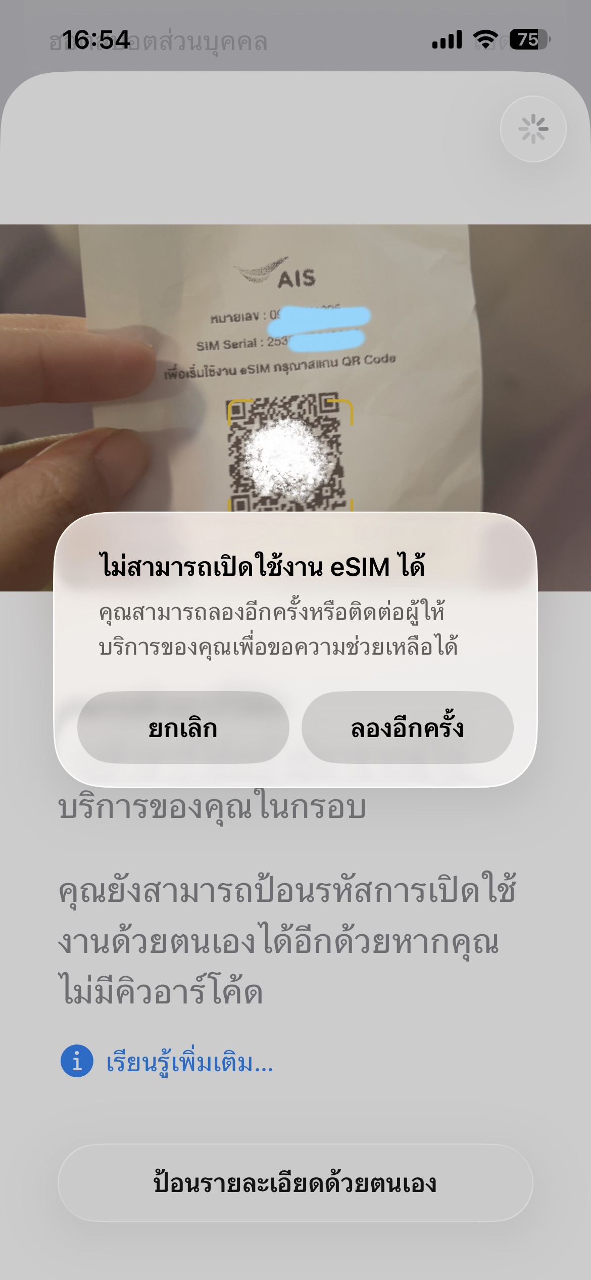 เมื่อวันอาทิตย์ไปทำเรื่องย้ายค่ายเบอร์เดิมจาก ดีแทคมาเอไอเอส ดีแทคใช้เป็นesimอยู่แล้ว วันนี้วันอังคารไปเช็คที่ศูนย์เอไอเอส พนักงานบอกย้ายมาได้แล้ว และจะติดตั้งเป็นesim แต่ขึ้นมาแบบนี้ค่ะ