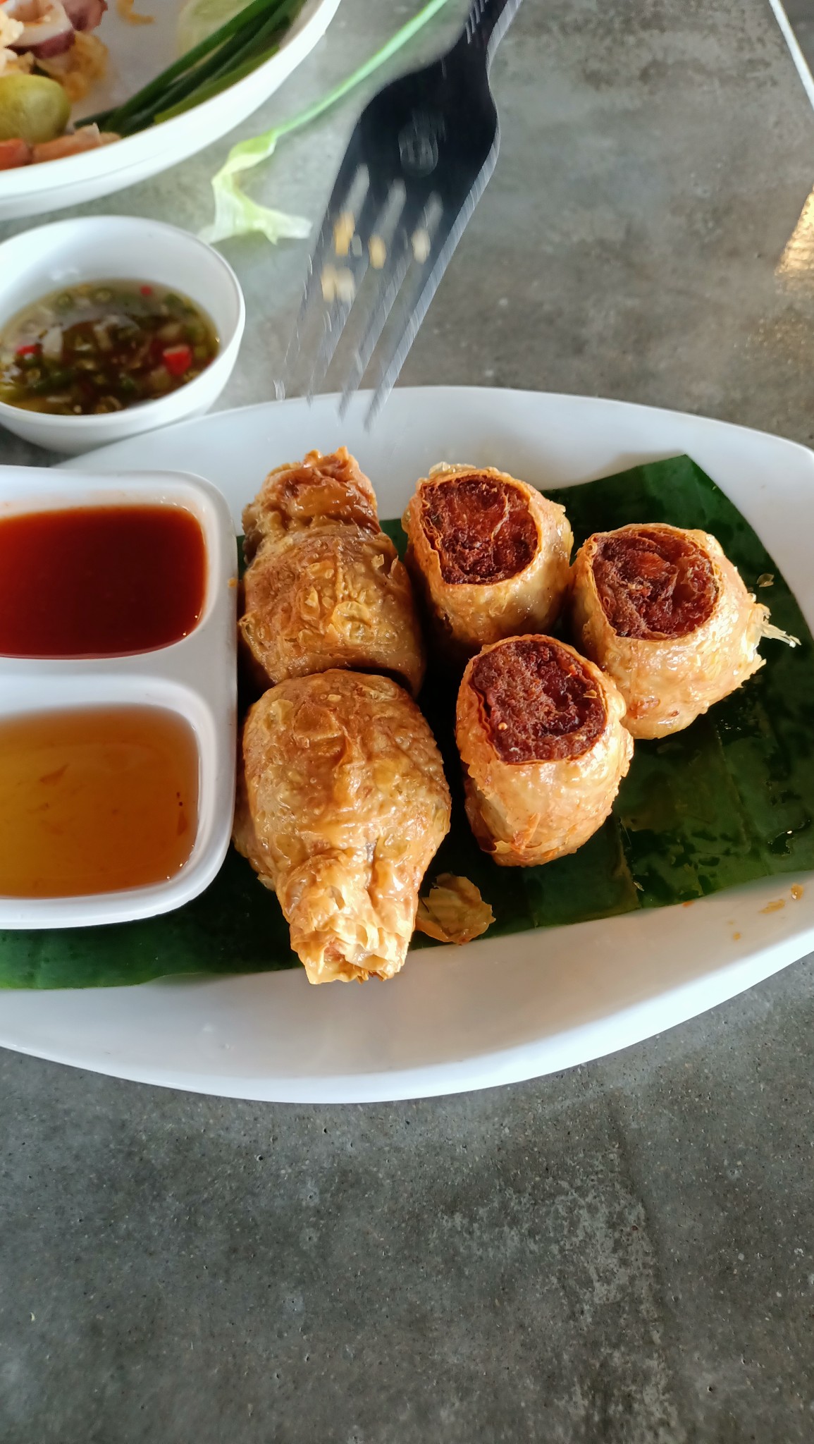 ตอนแรกดูเมนู ก็ว่าแพงไปนิดนึงนะครับ แต่พอมาเสิร์ฟ ก็โอเค ครับ ดูเยอะดีครับ น้ำจิ้มซีฟู้ด อร่อยดีครับ อีกเมนูนึง ข้าวผัดทะเลครับ 120 เช่นกันครับ อันนี้เหมือนจะน้อย ครับ แต่พอแหวกออกมาดู โอเคเ