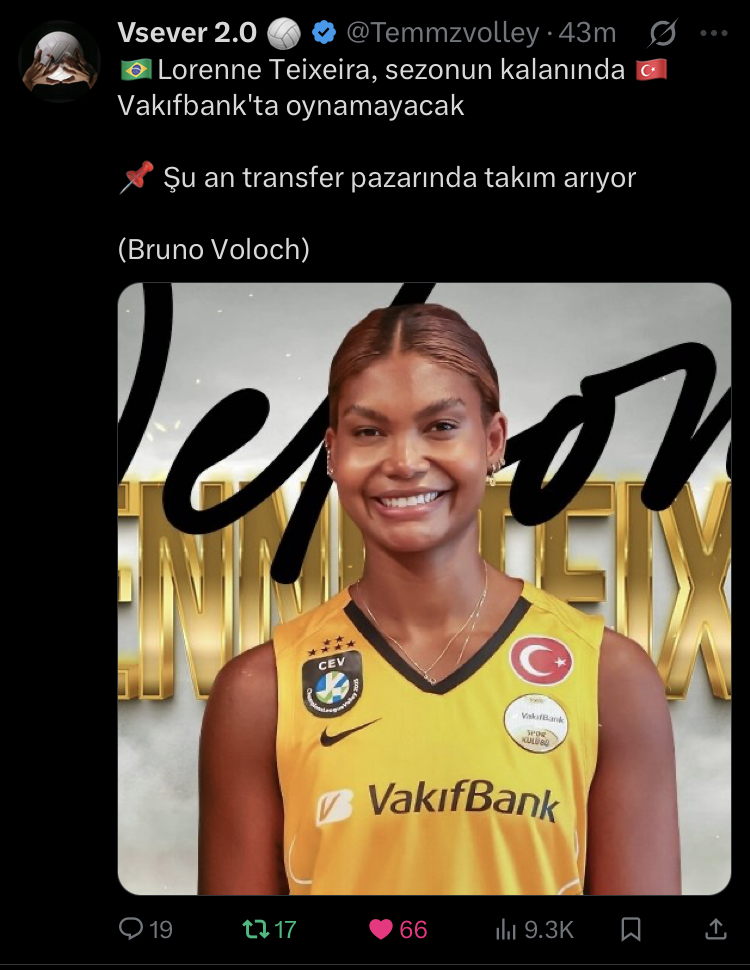 ตัวแคร์ไม่ทันแม่ Lorenne Teixeira🇧🇷 จะไม่ได้ลงให้วากิฟในเกมทั้งฤดูดาลโดยก่อนหน้านี้ก็ไม่มีรายชื่อสักนัด