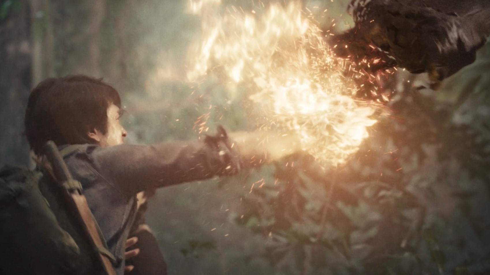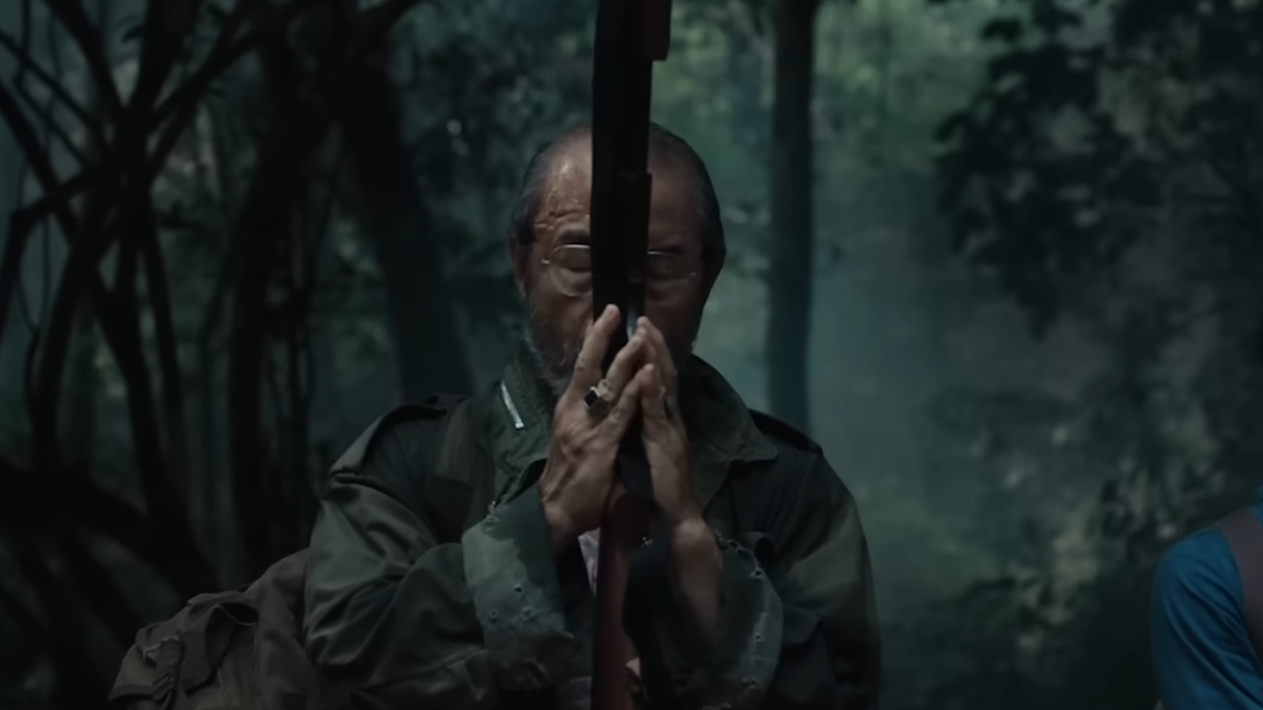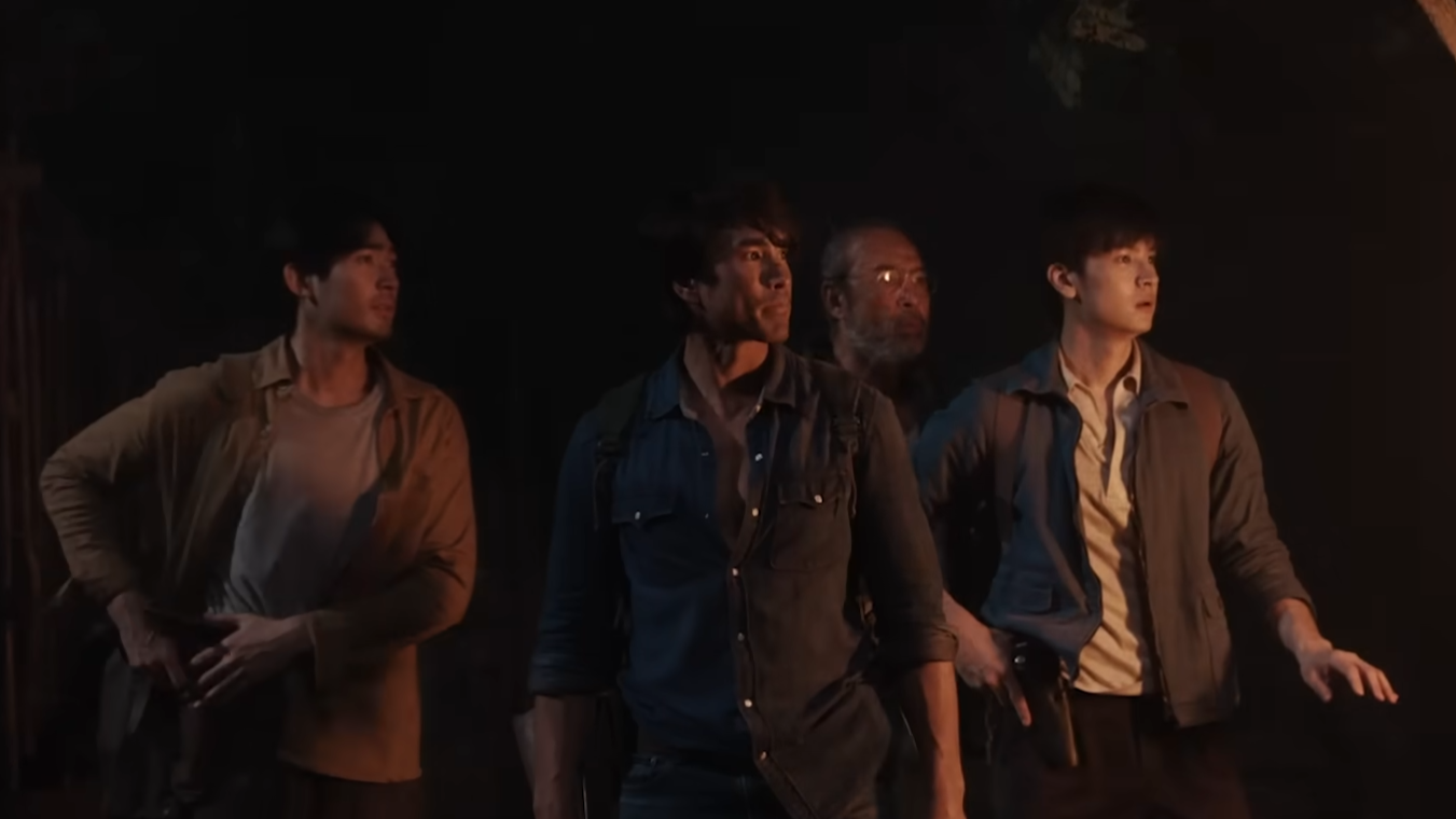 6) เพราะหากงานสร้างของภาพยนตร์บ้านเราไม่ใช่แบบ Godzilla vs. Kong ที่จะมีแค่ฉากต่อสู้แล้วจะเสิร์ฟความเพลิดเพลินให้ผู้ชมได้ตลอดทั้งเรื่องแล้วละก็คุณควรจะโฟกัสที่การเล่าเรื่องดีกว่า ซึ่งกว่า 80 เปอร์เซนต์ของธี่หยด 3 เกาะติดไปกับการลุยป่าของ “ยักษ์” (ณเดชน์ คูกิมิยะ) และ “จ่าประพันธ์” (องอาจ เจียมเจริญพรกุล) เพื่อตามหา “ยี่” (ณัฐชา นีน่า เจสซิกา พาโดวัน) น้องเล็กของบ้านที่โดนจับตัวไป แต่คุณภาพของความน่ากลัวนั้นแย่กว่าภาคสองมาก เพราะมันเต็มไปด้วยจังหวะหลอกแบบเดิมๆ ไร้ความสร้างสรรค์ และยังไร้ตรรกะพื้นฐานอีกด้วย (ผีลักพาตัวมาได้ไกลมาก ประสิทธิภาพยิ่งกว่าเฮลิคอปเตอร์ของจ่าประพันธ์ในภาคที่แล้วอีก) รวมถึงต้นกำเนิดของผีชุดดำที่ตื้นเขินมาก