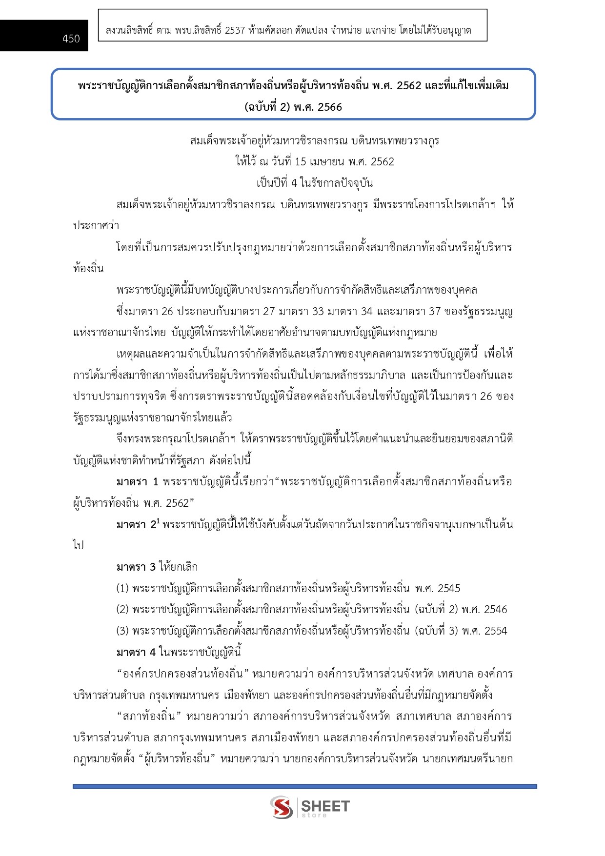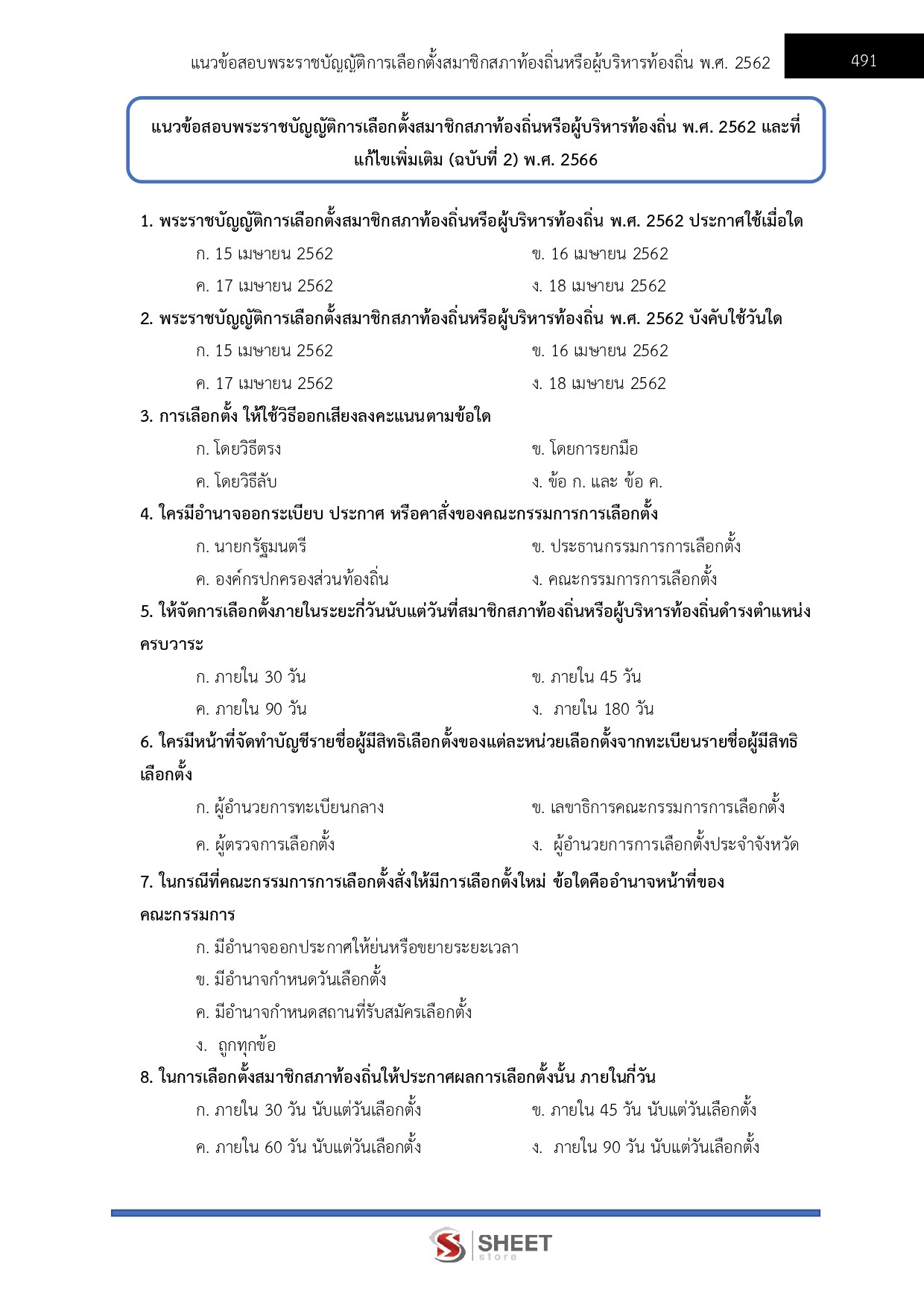 - แนวข้อสอบพระราชบัญญัติการเลือกตั้งสมาชิกสภาท้องถิ่นหรือผู้บริหารท้องถิ่น พ.ศ. 2562 และที่แก้ไขเพิ่มเติม (ฉบับที่ 2) พ.ศ. 2566