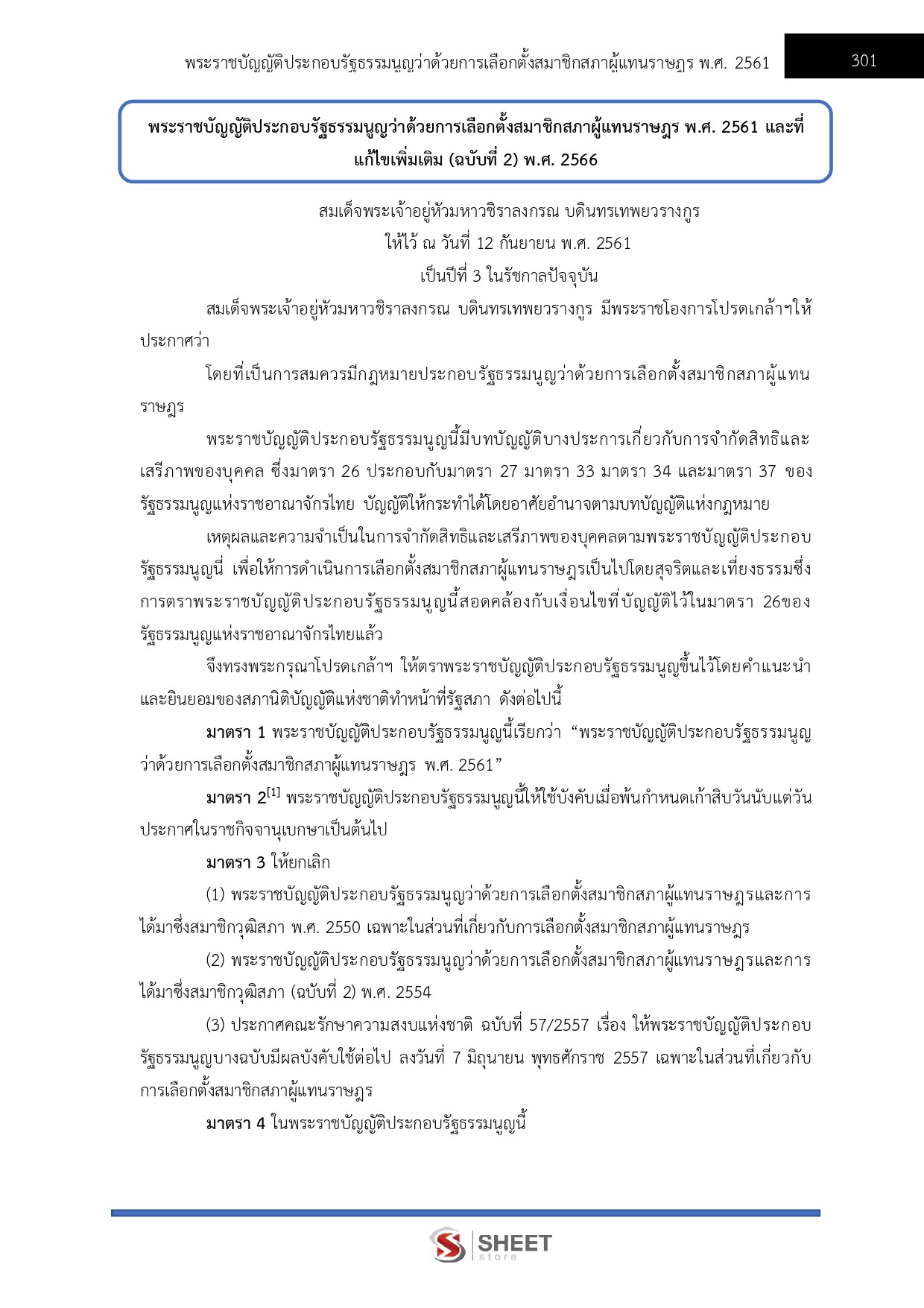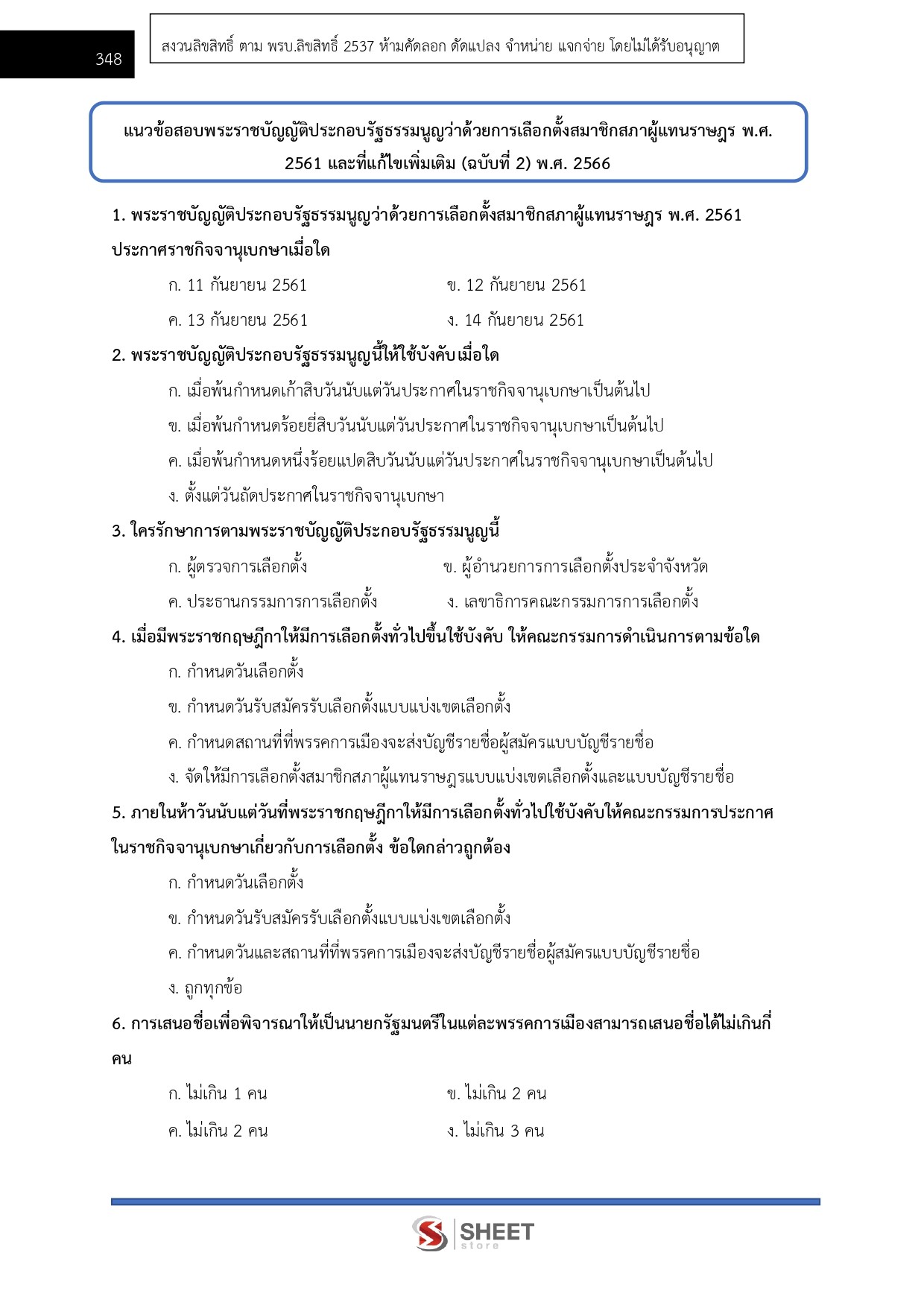 - แนวข้อสอบพระราชบัญญัติประกอบรัฐธรรมนูญว่าด้วยการเลือกตั้งสมาชิกสภาผู้แทนราษฎร พ.ศ. 2561 และที่แก้ไขเพิ่มเติม (ฉบับที่ 2) พ.ศ. 2566