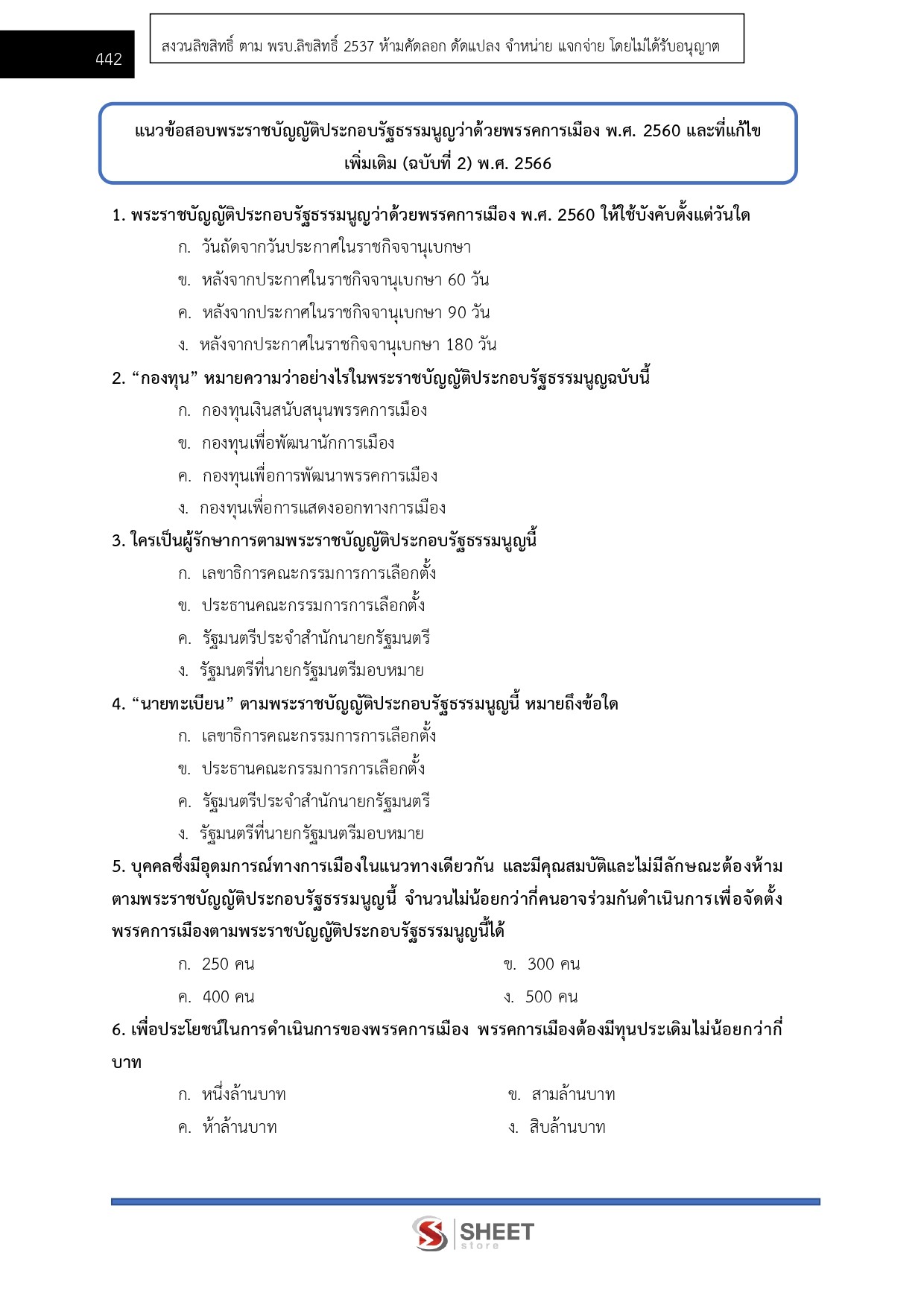 - แนวข้อสอบพระราชบัญญัติประกอบรัฐธรรมนูญว่าด้วยพรรคการเมือง พ.ศ. 2560 และที่แก้ไขเพิ่มเติม (ฉบับที่ 2) พ.ศ. 2566