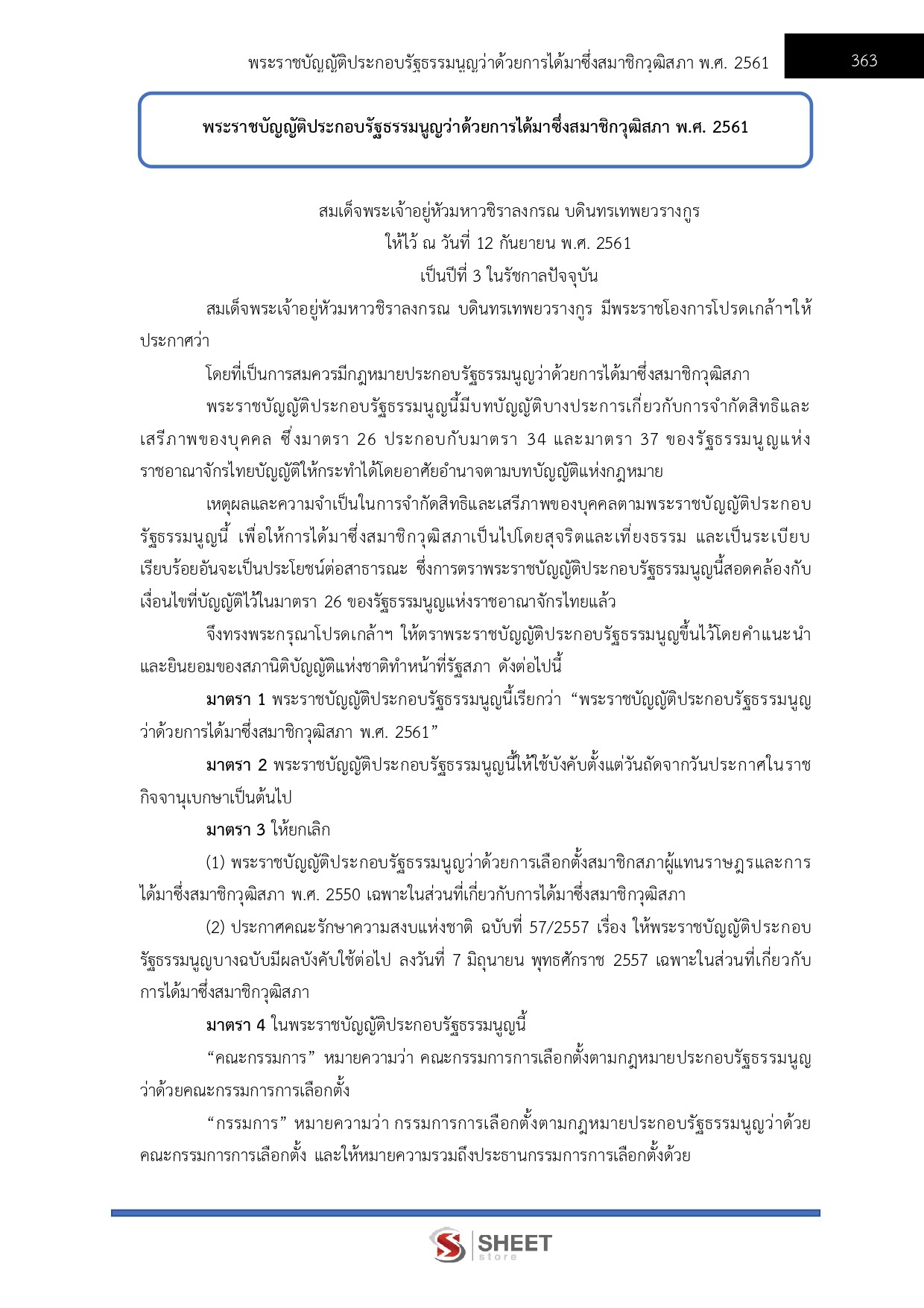 - แนวข้อสอบพระราชบัญญัติประกอบรัฐธรรมนูญว่าด้วยการได้มาซึ่งสมาชิกวุฒิสภา พ.ศ. 2561