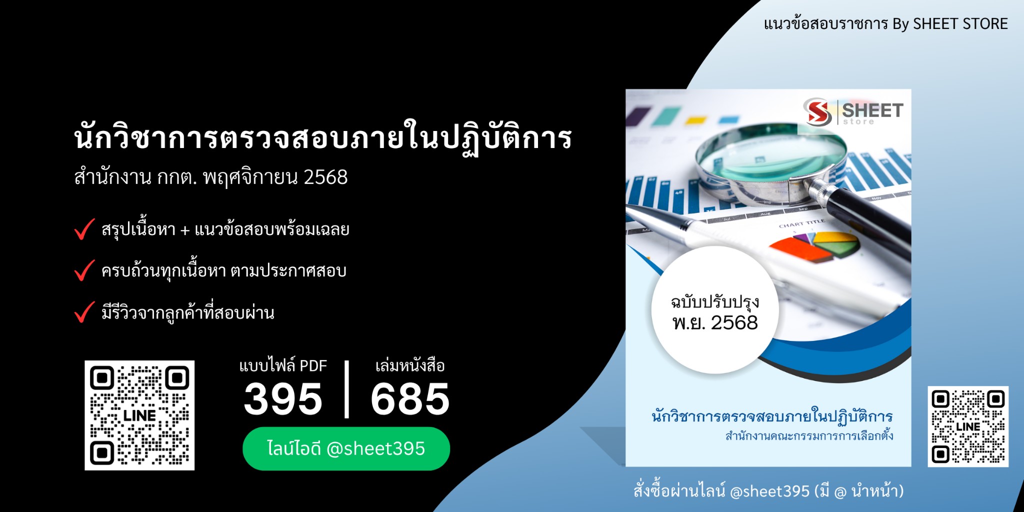 แนวข้อสอบ นักวิชาการตรวจสอบภายในปฏิบัติการ กกต. ฉบับสมบูรณ์ พฤศจิกายน 2568 สรุปเนื้อหา + แนวข้อสอบพร้อมเฉลยอธิบาย จัดทำโดยทีมงานมืออาชีพมากประสบการณ์ ครบถ้วนทุกเนื้อหาในเล่มเดียว ตรงตามประกาศสอบ