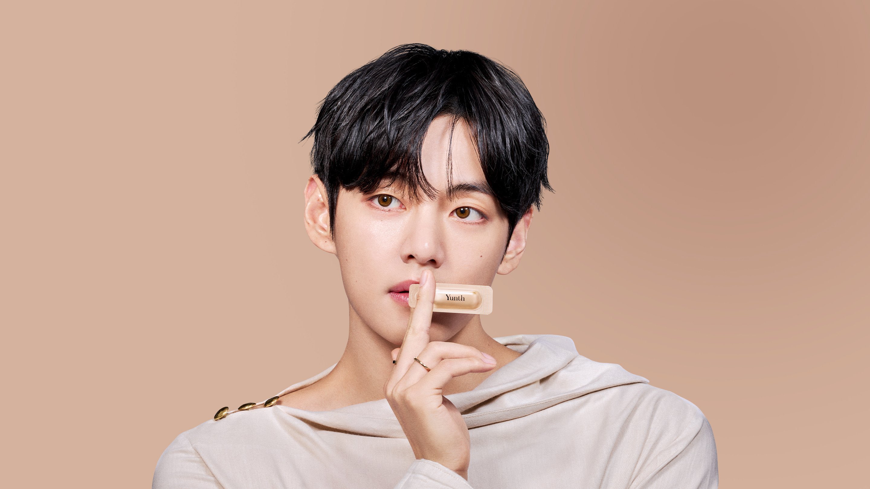 ในโฆษณาชุดนี้ วีได้เผยผิวสวยเปี่ยมไปด้วยความกระจ่างใส พร้อมคำพูดเชิญชวนว่า “เข้ามาใกล้อีกสิครับ” นอกจากนี้ยังมีฉากน่าประทับใจอื่น ๆ ไม่ว่าจะเป็นฉากที่เซรั่มของ Yunth หยดลงบนใบหน้าด้านข้างที่ดูดีไร้ที่ติของวี ก่อนที่เนื้อเซรั่มจะค่อยๆ ซึมซาบเข้าสู่ผิว รวมถึงฉากที่วีใช้นิ้วแตะริมฝีปากพร้อมรอยยิ้มอันลึกลับน่าค้นหา ฉากทั้งหมดนี้ล้วนดึงดูดสายตาผู้ชมได้เป็นอย่างดี โฆษณาจบลงด้วยประโยคติดหูว่า “Yunth...เพื่อผิวของคุณ” เป็นการปิดท้ายที่ทั้งน่าจดจำและสื่อถึงเสน่ห์ของ Yunth อย่างสมบูรณ์แบบ ที่สำคัญในโฆษณายังมี “Hidden V” ซ่อนอยู่ด้วย ถือว่าเป็นอีกหนึ่งไฮไลต์ที่ไม่ควรพลาด